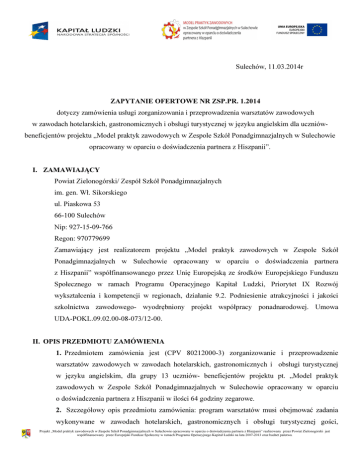 ZAPYTANIE OFERTOWE NR ZSP.PR. 1.2014