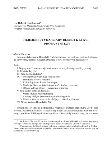 Hermeneutyka wiary Benedykta XVI – próba syntezy