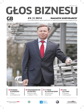 GŁOS BIZNESU ISSN 2353-4117 GB #4 (30) 2014 MAGAZYN GOSPODARCZY DYSTRYBUOWANY BEZPOŚREDNIO DO WIELKOPOLSKICH PRZEDSIĘBIORCÓW GŁOS BIZNESU GMINA PRZYJAZNA MIESZKAŃCOM I INWESTOROM Tadeusz Czajka, wójt gminy Tarnowo Podgórne W YZWANIA W SPRZEDAŻY Debata przedsiębiorców P RZEDSIĘBIORSTWO DO KONTROLI Relacje między urzędami i firmą 11 PORAD DLA EKSPORTERÓW Jak planować ekspansję? F LOTA DLA FIRMY Propozycje motoryzacyjne trendy GŁOS BIZNESU #4 (30) 2014 GB GŁOS BIZNESU MAGAZYN GOSPODARCZY DYSTRYBUOWANY BEZPOŚREDNIO DO WIELKOPOLSKICH PRZEDSIĘBIORCÓW 6 16 10 28 44 WYWIAD numeru W gminie Tarnowo Podgórne pierwsze plany zagospodarowania przestrzennego były skupione na działaniach na rzecz rozwoju przedsiębiorczości i przyciągania dużych inwestorów zagranicznych. To stworzyło klimat przyjazny dla inwestorów, który sprawia, że również dziś dobrze prowadzi się biznes. rozmowa Gmina przyjazna mieszkańcom i inwestorom Tadeusz Czajka, wójt gminy Tarnowo Podgórne 6 debata Wyzwania marketingu i sprzedaży felieton 10 Czy proces budowlany zostanie uproszczony? 14 Co w przetargach piszczy 15 32 Rosnąca niepewność na GPW 28 Czy „pięcioletnie małżeństwo” to dobry interes, cz.2 30 Rozwój przedsiębiorczości w rękach… kobiet 50 twoja firma Poznań przyciąga zasoby Firma do kontroli Kto i jak sprawdza przedsiębiorcę? Sukcesja czy sprzedaż firmy 16 18 motoryzacja 21 Zoptymalizuj zarządzanie pojazdami w firmie – flota 32 24 trendy gospodarka 11 porad dla planujących inwestycje za granicą 26 Potomkowie wieży Babel 4 GŁOS BIZNESU nr 4 (30) 2014 41 Jedzenie w wielkim mieście Kolebka cygar typu shortfiller szef kuchni poleca Europejska klasyka kronika Z życia organizacji Kalendarium 42 46 44 48 49 Czego brakuje Rada redakcyjna: Anna Lisewska Business Centre Club – Loża Wielkopolska Kalina Kiser-Beyme Polska Izba Gospodarcza Importerów, Eksporterów i Kooperacji Monika Przybysz Wielkopolska Izba Budownictwa Karina Plejer Wielkopolski Klub Kapitału Małgorzata Animucka Wielkopolski Związek Pracodawców Zdjęcie na okładce: mat. prasowe UG Tarnowo POdgórne Redakcja i realizacja: Skivak Custom Publishing www.skivak.pl Dyrektor wydawniczy: Damian Nowak [email protected] Koordynacja projektu i redakcja: Michał Cieślak [email protected] Projekt graficzny i skład: Marta Foremska Reklama i promocja: Iwona Szymańska [email protected] tel. +48 882 039 149 Renata Nowak [email protected] tel. +48 508 909 114 Adres redakcji: Głos Biznesu ul. Głuchowska 1, 60-101 Poznań tel. + 48 61 625 61 15 fax + 48 61 625 61 21 www.glos-biznesu.pl do sukcesu? Lista kompetencji osób zarządzających, które mogą przesądzać o sukcesie projektu jest długa, ta samo jak lista obszarów działania firmy, które muszą funkcjonować jak precyzyjne mechanizmy zegarka, by uprawdopodobnić pozytywny rezultat. Dobry produkt, skuteczna sprzedaż i marketing… i co jeszcze? Zamykamy to wydanie Głosu Biznesu w dniu, gdy cała Polska w biało-czerwonych barwach świętuje sukces siatkarzy. Ich gra przyniosła pierwszy od 40. lat w tej dyscyplinie taki SUKCES. Na przekór malkontentom, 38. letni trener w pierwszej swojej poważnej trenerskiej pracy, zaprowadził podopiecznych na sportowy Olimp. Został trenerem dzięki umiejętności podjęcia ryzyka i ZAUFANIU pracodawców. ZAUFANIEM obdarzyli go zawodnicy, którzy wiedzieli, że wie co robi, wybierając taki skład, wystawiając w ważnych meczach rezerwowych, dobierając strategię i taktykę, wreszcie odsyłając do domu, wydawałoby się kluczowego, zawodnika. Gdyby zabrakło tego jednego kluczowego składnika – ZAUFANIA – nie wiadomo jak potoczyłyby się losy turnieju. Podobnie w biznesie – zaufanie jest potrzebne, a jak wynika choćby z debaty z ubiegłego numeru Głosu Biznesu – ciągle go brakuje. Od podstawowego, że mój kontrahent dotrzyma terminu dostawy, będzie potrafił wykonać usługę satysfakcjonująco, lub że dotrzyma terminu płatności za moją fakturę i nie będę musiał go ścigać przez firmę windykacyjną. Ile skomplikowanych projektów w Polsce się nie udało przez to, że partnerzy w ramach konsorcjum nie mieli do siebie zaufania, lub swoimi działaniami /zaniechaniami mocno je nadwyrężyli. I jeszcze jedno ZAUFANIE jest bardzo ważne: między firmą a kontrolującymi ją dziesiątkami urzędów państwowych. Jak mówi Jacek Kulik z WZPL w rozmowie z nami, to się zmienia. Do tego by nie zginąć w gąszczu przepisów potrzeba czasem cierpliwości urzędnika, jasnej interpretacji i dobrego stanowienia prawa. Ale przede wszystkim ZAUFANIA. Redakcja Zdjęcia: Shutterstock.com, archiwum własne Numer zamknięto 19 września 2014r. Dołącz do nas na Facebooku Pobierz aplikację PublishSoSimply i czytaj Głos Biznesu w wersji tekstowej na swoim iPadzie! Partner technologiczny: Pobierz aplikację PublishSoSimply rozmowa W rankingu Forbes`a w kategorii miast do 50 tysięcy mieszkańców Tarnowo Podgórne jest drugie pod względem atrakcyjności dla inwestorów w Polsce, w rankingu Rzeczpospolitej co roku w ścisłej czołówce gmin. Gmina przyjazna mieszkańcom i inwestorom W ciągu ostatnich ośmiu lat o ok. 25% zwiększyła się liczba mieszkańców. Jednocześnie o ok. 55% wzrosła liczba przedsiębiorstw w gminie. Ma to niebagatelny wpływ na zwiększenie dochodów gminy o ponad 60% – powodów do zadowolenia nie ukrywa Tadeusz Czajka, wójt gminy Tarnowo Podgórne. ROZMAWIAŁ: MICHAŁ CIEŚLAK Tarnowo Podgórne jest integralną częścią aglomeracji poznańskiej. Co to oznacza dla gminy? Nasze położenie na styku z dużym miastem, jakim jest Poznań, ma istotne znaczenie dla gminy. Ma bezpośredni wpływ na strategiczne kierunki rozwoju, jak i zachodzące zmiany demograficzne. Jesteśmy członkiem stowarzyszenia Metropolia Poznań, w którym działa ponad dwadzieścia gmin okalających Poznań. Ale jednocześnie każda z gmin zabiega o lepsze warunki do życia dla swoich mi