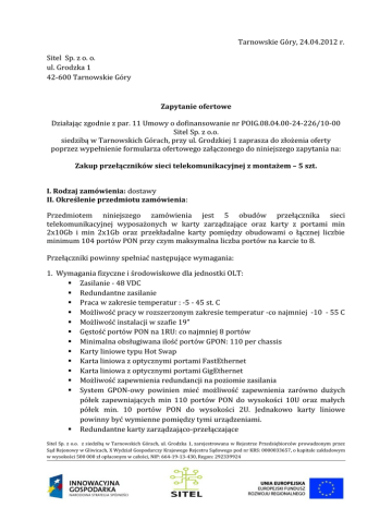 Tarnowskie Góry, 24.04.2012 r. Sitel Sp. z o. o. ul. Grodzka 1 42