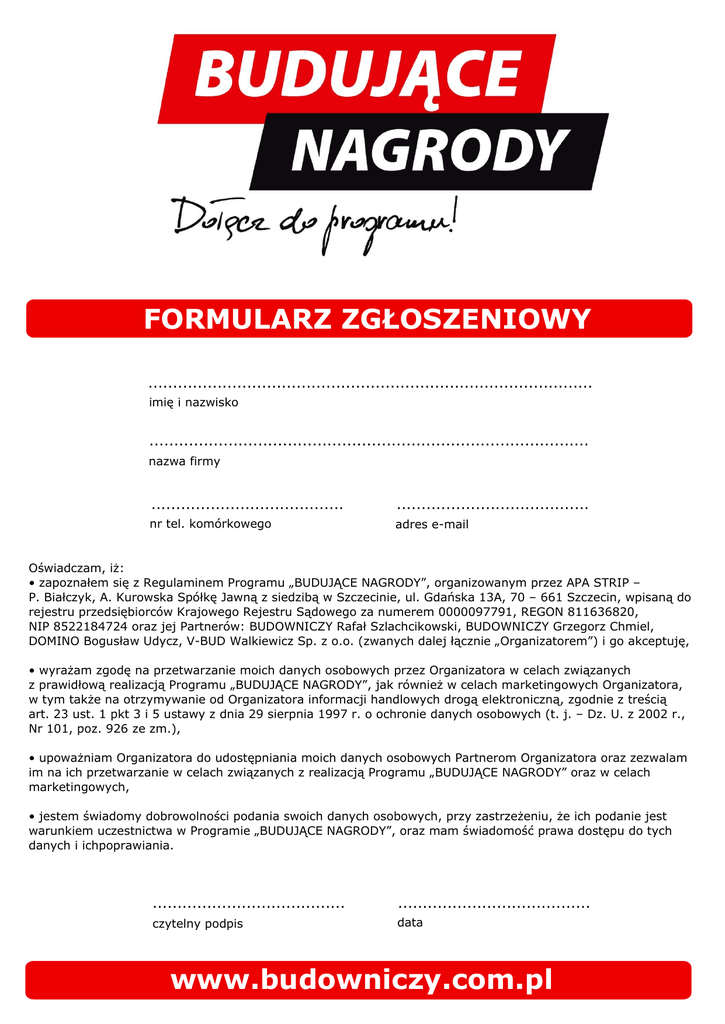FORMULARZ ZGŁOSZENIOWY www.budowniczy.com.pl