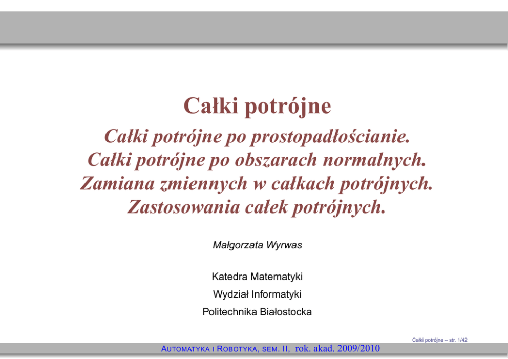 Całki potrójne - Katedra Matematyki, Politechnika Białostocka