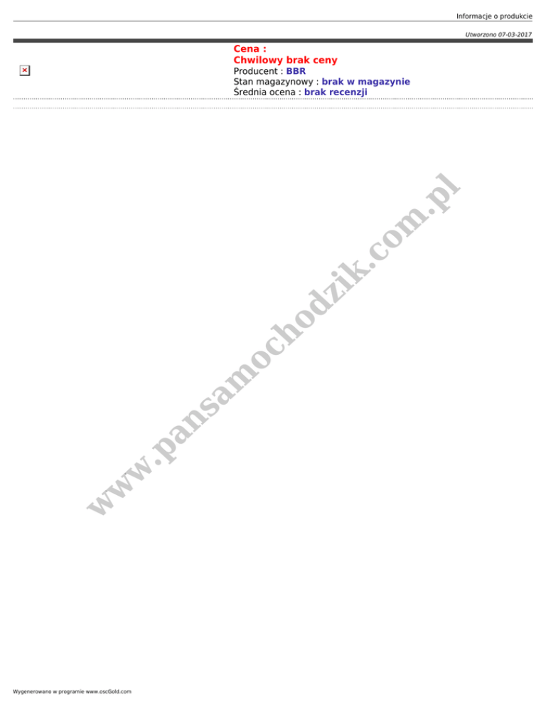 Informacje o produkcie Utworzono 07-03-2017 Cena : Chwilowy brak ceny w w w .p an sa m oc ho dz ik .c om .p l Producent : BBR Stan magazynowy : brak w magazynie Średnia ocena : brak recenzji Wygenerowano w programie www.oscGold.com