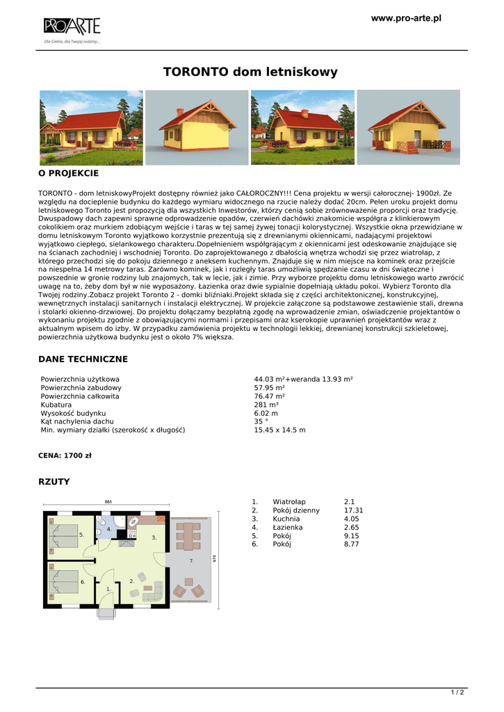 TORONTO dom letniskowy - Pro-arte