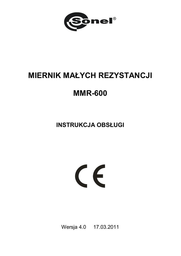 MIERNIK MAŁYCH REZYSTANCJI MMR-600 INSTRUKCJA OBSŁUGI Wersja 4.0 17.03.2011 Cyfrowy miernik MMR-600 przeznaczony jest do pomiarów małych rezystancji w zakresie od 1µΩ do 200Ω prądem do 10A. OSTRZEŻENIE: Przyrządu nie wolno stosować do sieci i urządzeń w pomieszczeniach o specjalnych warunkach, np. o atmosferze niebezpiecznej pod względem wybuchowym i pożarowym. Do najważniejszych cech przyrządu MMR-600 należą: • pomiar rezystancji: - połączeń spawanych, - połączeń szyn wyrównawczych, - styków, - połączeń kabli, - połączeń elektrycznych elementów grzejnych, - spoin szyn, - przewodów i kabli, - uzwojeń (silników, transformatorów, itp.), - cewek o niskiej oporności • możliwość sprawdzenia: - jakości połączeń lutowanych, - ciągłości przewodów uziemiających • automatyczny wybór zakresu pomiarowego • kilka trybów pomiarowych umożliwiających różnorodne zastosowania (w tym kontrolę jakości serii wyrobów) • możliwość zdalnego sterowania pomiarami z komputera PC • możliwość aktualizacji programu sterującego miernikiem • pamięć 990 wyników pomiaru z możliwością ich przesłania do komputera PC przez łącze RS-232C • duży, czytelny wyświetlacz graficzny z możliwością podświetlenia • monitorowanie stanu naładowania baterii • samoczynne wyłączanie się nieużywanego przyrządu (AUTO-OFF) • ergonomiczna obsługa SPIS TREŚCI 1 WSTĘP......................................................................................................................5 2 BEZPIECZEŃSTWO ..............................................................................................6 3 PRZYGOTOWANIE MIERNIKA DO PRACY ...................................................6 4 KLAWIATURA I WYŚWIETLACZ .....................................................................7 4.1 4.1.1 4.1.2 4.2 4.3 4.4 5 ROZMIESZCZENIE GNIAZD I KLAWISZY..................................................................7 Gniazda..........................................................................................................7 Klawiatura .....................................................................................................8 WYŚWIETLACZ GRAFICZNY (LCD) .......................................................................9 BRZĘCZYK ..........................................................................................................11 PRZEWODY POMIAROWE .....................................................................................12 POMIAR .................................................................................................................13 5.1 PODŁĄCZANIE MIERNIKA ....................................................................................13 5.2 KONFIGUROWANIE OPCJI POMIAROWYCH ...........................................................13 5.2.1 Dobór zakresu pomiarowego i ograniczenie maksymalnego prądu pomiarowego ...............................................................................................14 5.2.2 Tryby wyzwalania pomiaru..........................................................................15 5.2.2.1 5.2.2.2 5.2.2.3 5.2.2.4 Pomiar w normalnym trybie wyzwalania .............................................................15 Pomiar w automatycznym trybie wyzwalania ......................................................15 Pomiar w ciągłym trybie wyzwalania dla wybranego rezystancyjnego typu obiektu ..................................................................................................................15 Pomiar w ciągłym trybie wyzwalania dla wybranego indukcyjnego typu obiektu15 5.2.3 Przepływ prądu............................................................................................16 5.2.4 Typ obiektu mierzonego i czas pomiaru.......................................................16 5.2.5 Wpis do pamięci...........................................................................................17 5.3 WYŚWIETLANIE WYNIKÓW POMIARÓW ...............................................................17 5.4 OKIENKOWY TRYB PRACY ..................................................................................18 6 PAMIĘĆ WYNIKÓW POMIARÓW...................................................................19 6.1 6.2 6.3 6.4 6.5 6.5.1 6.5.2 7 RĘCZNE WPISYWANIE WYNIKÓW POMIARÓW DO PAMIĘCI...................................19 AUTOMATYCZNE WPISYWANIE WYNIKÓW POMIARÓW DO PAMIĘCI ....................20 PRZEGLĄDANIE PAMIĘCI .....................................................................................21 KASOWANIE PAMIĘCI ..........................................................................................21 PRZESYŁANIE WYNIKÓW POMIARÓW Z PAMIĘCI DO KOMPUTERA ........................22 Pakiet wyposażenia do współpracy z komputerem ......................................22 Połączenie miernika z komputerem .............................................................22 MENU, INNE OPCJE............................................................................................23 7.1 7.2 7.3 REGULACJA KONTRASTU WYŚWIETLACZA ..........................................................23 WYBÓR JĘZYKA ..................................................................................................23 INFORMACJE O PRODUCENCIE I PROGRAMIE ........................................................23 3 8 FUNKCJE ZAAWANSOWANE ..........................................................................24 8.1 8.2 8.3 8.4 8.5 9 KALIBRACJA RĘCZNA..........................................................................................24 AUTOKALIBRACJA ..............................................................................................24 POWRÓT DO KALIBRACJI FABRYCZNEJ ................................................................25 UAKTUALNIANIE (UPGRADE) PROGRAMU ...........................................................25 STEROWANI