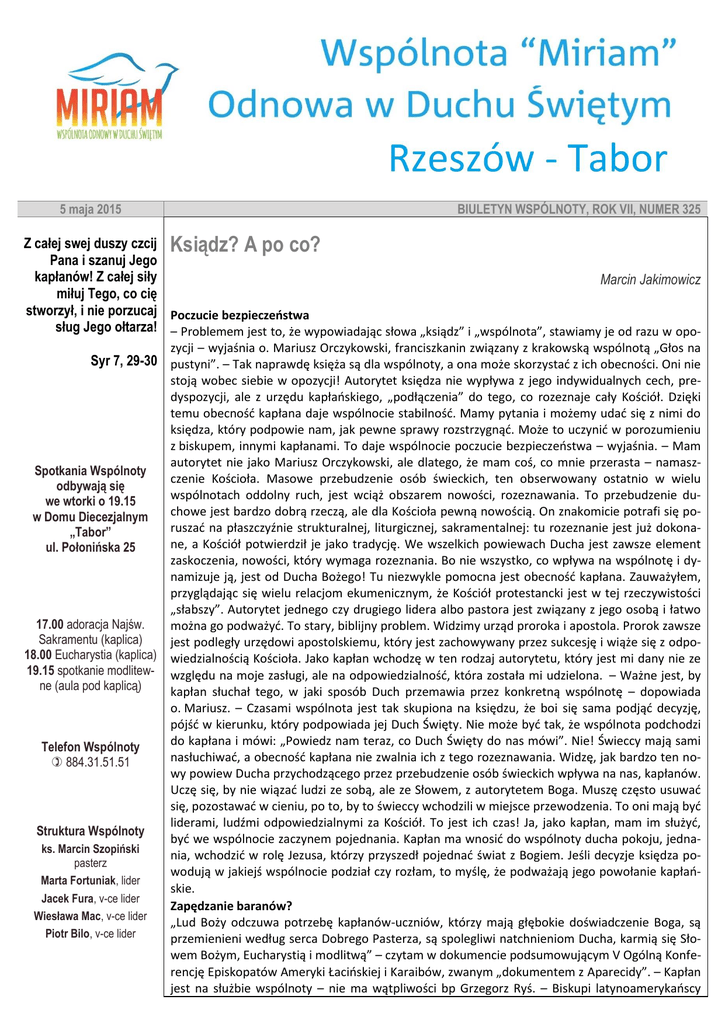 Ksiądz? - Miriam – Wspólnota Odnowy w Duchu Świętym