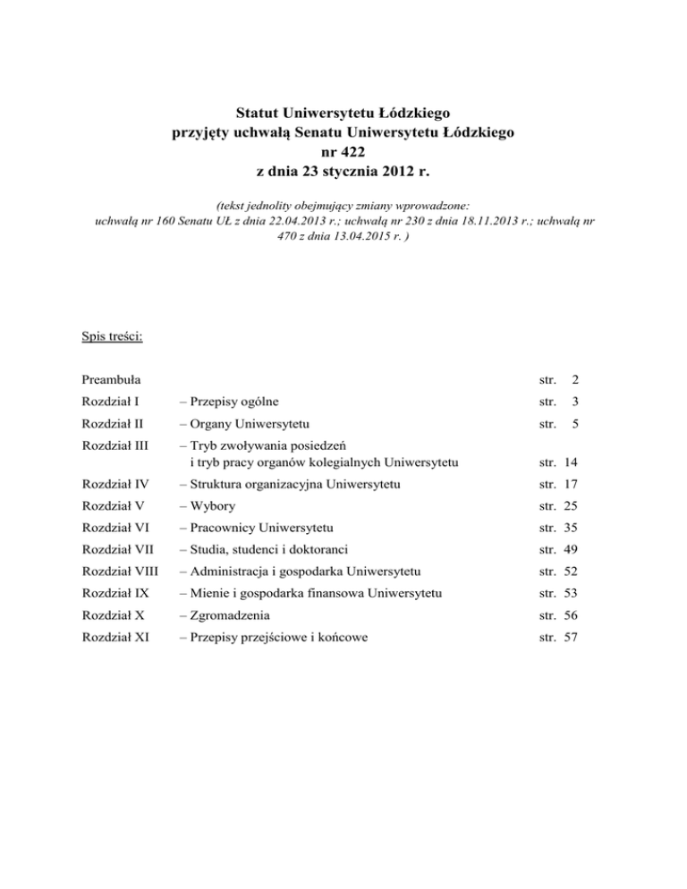 Statut Uniwersytetu Łódzkiego przyjęty uchwałą Senatu