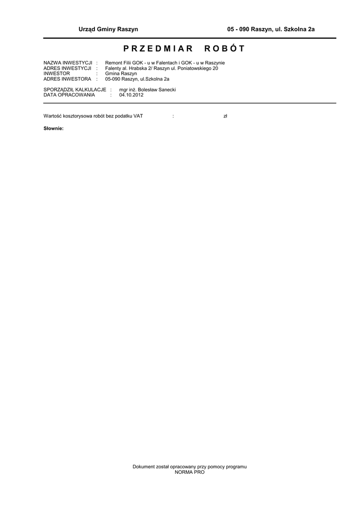 Remont Filii GOK w Falentach Przedmiar - BIP
