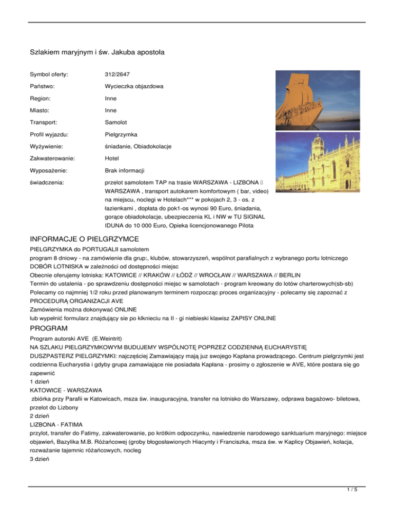 miejscu i godzinie zbiórki oraz poradnik pielgrzyma.