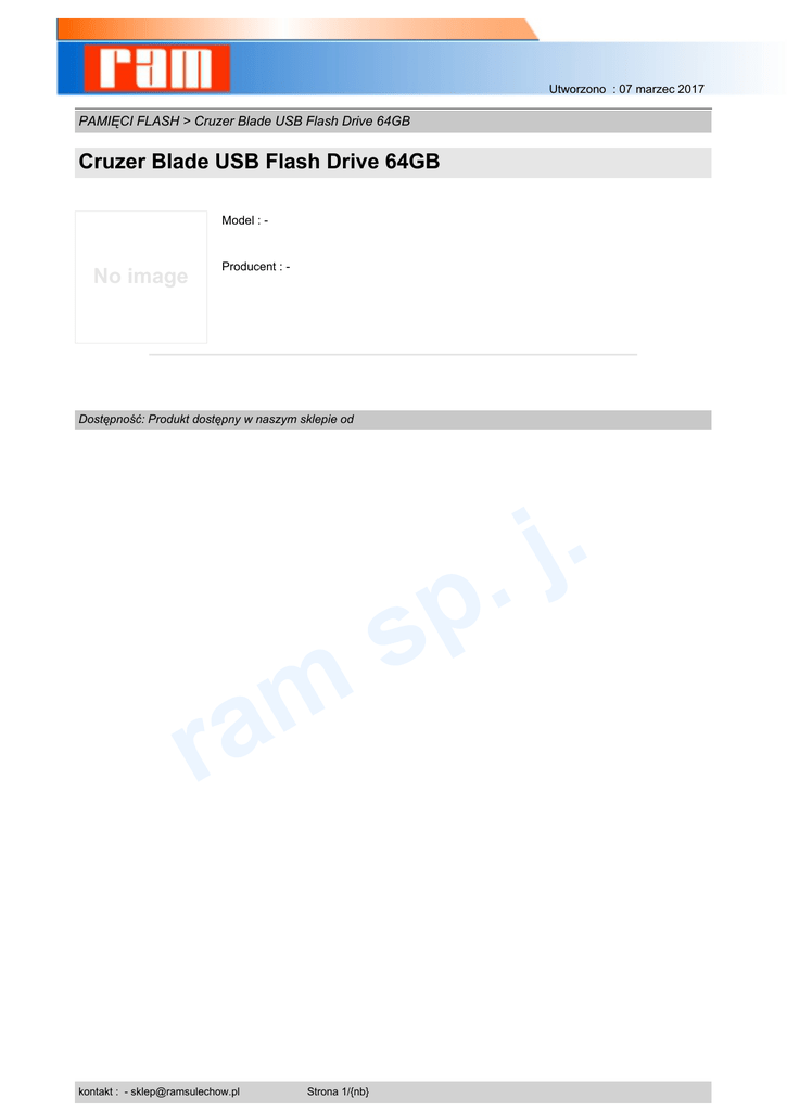 Utworzono : 07 marzec 2017 PAMIĘCI FLASH > Cruzer Blade USB Flash Drive 64GB Cruzer Blade USB Flash Drive 64GB Model : - No image Producent : - Dostępność: Produkt dostępny w naszym sklepie od . j . m a r kontakt : - [email protected] Strona 1/{nb} p s