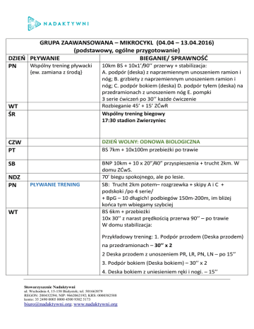 GRUPA ZAAWANSOWANA – MIKROCYKL (04.04 – 13.04.2016)