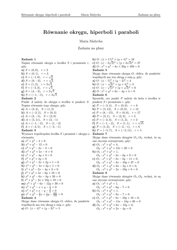 Mając dane równania okręgów O1 , O2 , wykaż, że