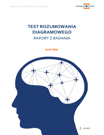 TEST ROZUMOWANIA DIAGRAMOWEGO RAPORT Z BADANIA Jane Doe 2/2/2015 WPROWADZENIE Test Rozumowania Diagramowego (DRT) z ang. Diagrammatic Reasoning Test jest narzędziem pomiaru umiejętności analizowania schematów i diagramów, a także pracy ze złożonymi ciągami reguł, procedur oraz procesów. Rozumowanie diagramowe jest kluczem do sukcesu w osiąganiu wydajności zawodowej na różnych stanowiskach, w szczególności na tych, w których wymaga się zdolności strategicznego i analitycznego myślenia tzn. na stanowiskach, na których od pracowników oczekuje się zdolności szybkiego uchwycenia dużego obrazu i w tym samym czasie do rozumienia implikacji danych organiczeń oraz założeń. DRT składa się z dwóch pojedynczych testów. Nieznacznie różnią się one od siebie w rodzaju zadań, które są do rozwiązania przez badanego. W czasie gdy głównym celem w Teście A jest określenie skutku opisanych zasad transformacji w informacjach przedstawionych w diagramie, cel Testu B to wyprowadzenie tych zasad transformacji z informacji zaprezentowanych wdiagramie. Test A w porównaniu do Testu B skupia się badziej na rozumowaniu odtwórczym niż twórczym. INTERPRETACJA Wyniki są przedstawione jako wyniki surowe oraz percentyle. Przy intepretacji wyników należy przede wszystkim polegać na wynikach percentylowych, które reprezentują odestek ludzi, którzy w porównaniu z populacją osiągneli wyniki takie same bądź niższe od wyniku badanej osoby. W interpretacji wyników używamy pięciu przedziałów wartości, a każdy z nich zawiera zgrupowane w percentylach wyniki: Bardzo Wysokie 85–100 Wysokie 76– 84 Średnie 25–75 Niskie 16–24 Bardzo Niskie 0–15 Wydajność osoby badanej jest oceniana pod kątem sześciu głównych parametrów: Całkowity Wynik Całkowita liczba poprawnych odpowiedzi (poziom rozumowania diagramowego). Wynik Testu A Całkowita liczba poprawnych odpowiedzi w Teście A (rodzaj rozumowania odtwórczego). Wynik Testu B Całkowita liczba poprawnych odpowiedzi w Teście B (rodzaj rozumowania twórczego). Skuteczność Liczba poprawnych odpowiedzi na pytania ze wszystkich, zadanych pytań. Tempo Pracy Liczba zadań, do których rozwiązania badany przystąpił. Całkowity Czas Czas potrzebny do uzupełnienia testu. Jane Doe 2|4 WYNIKI Imię Jane Doe Wersja Testu A - administracja nienadzorowana Całkowity Wynik (percentyle) 83 Całkowity Wynik (wynik surowy) 13 / 24 Całkowity Wynik w Teście A (percentyle) 74 Całkowity Wynik w Teście A (wynik surowy) 6 / 12 Całkowity Wynik w Teście B (percentyle) 89 Całkowity Wynik w Teście B (wynik surowy) 7 / 12 Skuteczność (percentyle) 74 Skuteczność (wynik surowy) 13 / 24 Tempo Pracy (percentyle) 100 Tempo Pracy (wynik Surowy) 24 / 24 Całkowity Czas 17 / 18 Normy: Normy globalne (N = 259, M = 104, F = 155, Wiek = 36, Wykształcenie Wyższe = 102, Wykształcenie Średnie (matura) = 101, Wykształcenie Średnie (bez matury) = 31, Wykształcenie Podstawowe = 25, Bez Brak Wykształcenia = 0) 0 10 20 30 40 50 60 70 80 Calkowity Wynik Wynik Testu A Tempo Pracy 100 Percentyle 83 74 Wynik Testu B Skutecznosc 90 89 74 100 Graficzna prezentacja wyników percentylowych w pięciu głównych parametrach testowanej wydajności w DRT. Jane Doe 3|4 Na podstawie kombinacji wyników percentylowych w parametrach Wydajności i Tempa Pracy, możliwe jest oszacowanie stylu pracy badanego w czasie uzupełniania testu. W trakcie badania, uczestnik może być IMPULSYWNY (Niska Skuteczność + Szybkie Tempo), SKUTECZNY (Wysoka Skuteczność + Szybkie Tempo), OSTROŻNY (Wysoka Skuteczność + Wolne Tempo) lub POWOLNY (Niska Skuteczność + Wolne Tempo). Badana osoba raczej uzupełniała test SKUTECZNIE (Wysoka Skuteczność + Szybkie Tempo) - zobacz wykres poniżej. Szybkie Tempo 100 90 80 70 60 IMPULSYWNY SKUTECZNY 50 POWOLNY 40 OSTROŻNY 30 20 10 Wolne Tempo 0 0 10 20 30 Niska Skuteczność Jane Doe 40 50 60 70 80 90 100 Wysoka Skuteczność 4|4