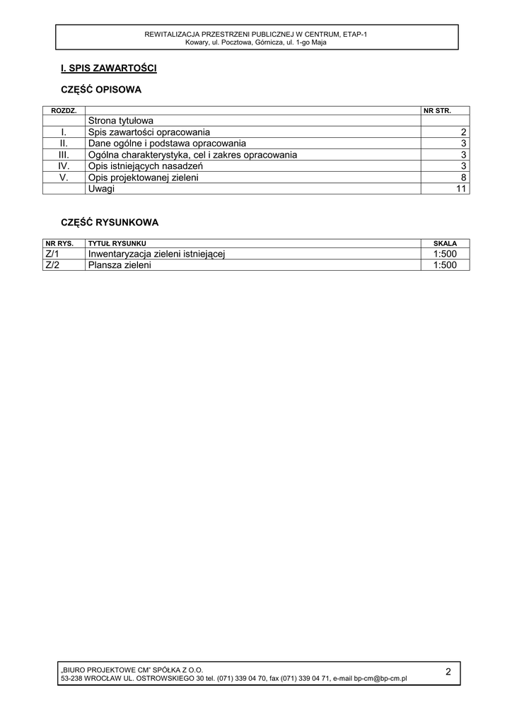 2 I. SPIS ZAWARTOŚCI CZĘŚĆ OPISOWA Strona tytułowa I. Spis