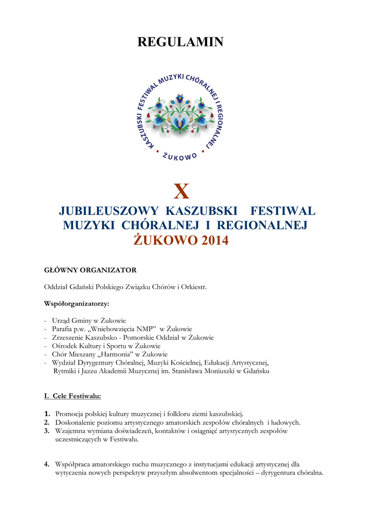 Regulamin X Jubileuszowy Kaszubskiego Festiwalu Muzyki