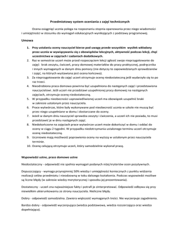Przedmiotowy system oceniania z zajęć technicznych Umowa