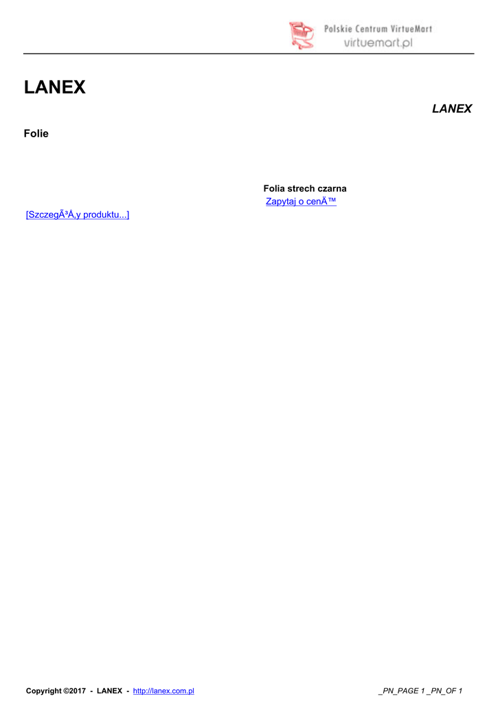 LANEX LANEX Folie Folia strech czarna Zapytaj o cenÄ™ [Szczegóły produktu...] Copyright ©2017 - LANEX - http://lanex.com.pl _PN_PAGE 1 _PN_OF 1