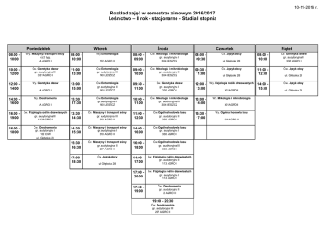 Rozkład zajęć w semestrze zimowym 2016/2017 Leśnictwo – II rok