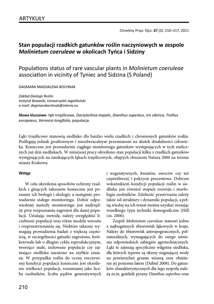 ARTYKUŁY Stan populacji rzadkich gatunków roślin