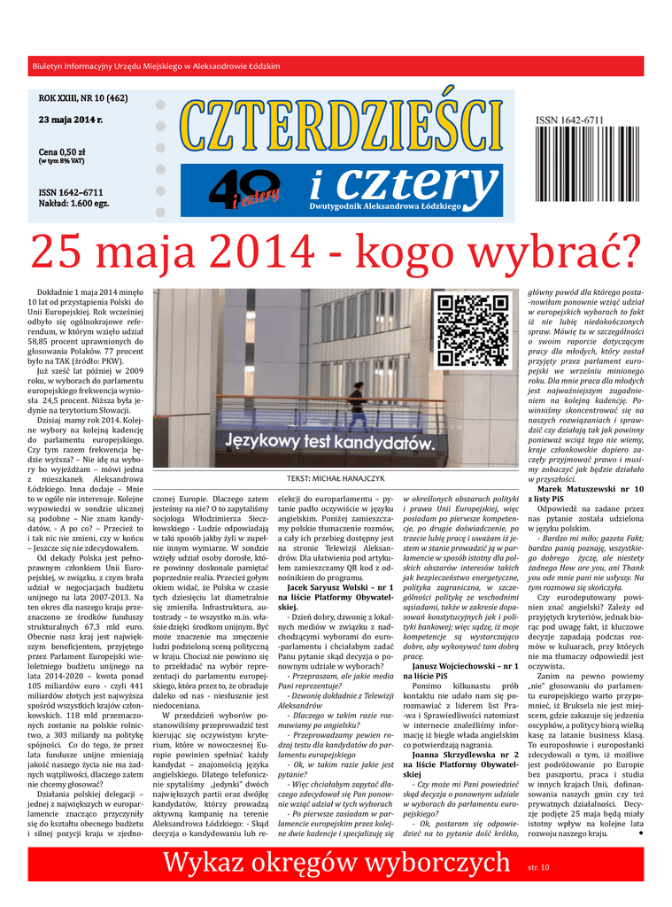 25 maja 2014 - kogo wybrać? ROK XXIII, NR 10 (462)