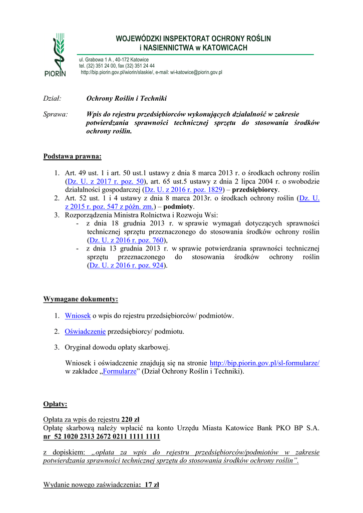 Wpis do rejestru- sprzęt - Państwowa Inspekcja Ochrony Roślin i