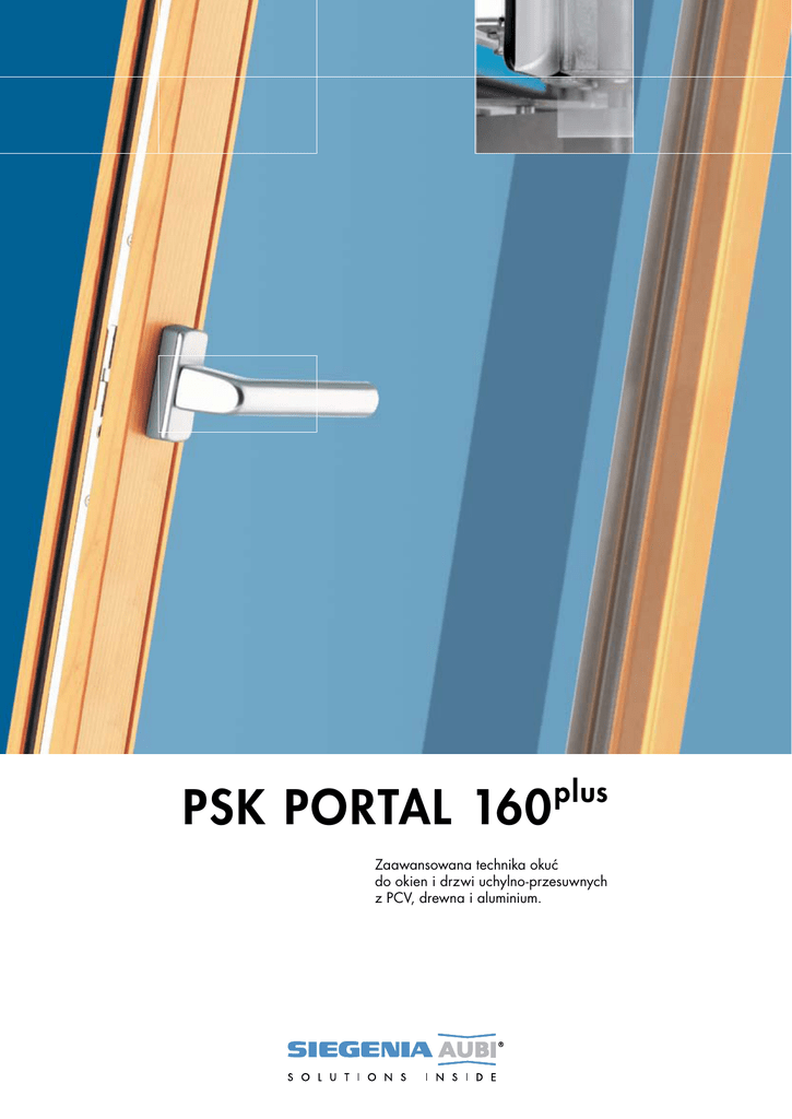 PSK PORTAL 160 plus Zaawansowana technika okuć do okien i drzwi uchylno-przesuwnych z PCV, drewna i aluminium. Portal 160 plus Po prostu dobrze! pozycja zamknięta uchył przesuwanie Możliwości plus r s amozabezpieczająca się regulacja wysokości gwarantuje prostą i bezpieczną obsługę rd zięki niewielkim wymiarom nadaje się również do wąskich profili rw ymagana szerokość ramy tylko 35 mm pozycja zamknięta uchył przesuwanie Zamykanie rd zięki elastycznemu systemowi okuć SI-AU wykorzystanie standardowych elementów od okien uchylno-rozwiernych daje możliwość swobodnego przypisywania funkcji klamce. Bezpieczeństwo w każdym narożniku rz integrowana regulacja wysokości optymalnie korygująca różnice luzu okuciowego r lekka obsługa dzięki obrotowym grzybkom rm ożliwość elastycznego zwiększenia bezpieczeństwa od poziomu podstawowego aż do klasy WK2 r luz okuciowy możliwy od 1015,5 mm po całym obwodzie Informacje techniczne w skrócie: r maksymalny ciężar skrzydła 160 kg r szerokość skrzydła w rowku okuciowym 670 – 1600 mm r wysokość skrzydła w rowku okuciowym 840 – 2360 mm r odjazd skrzydła 122 mm r dostępne kolory: srebrny, biały, kremowy, tytanowy, brązowy, średni brąz H4004.2722pl SIEGENIA-AUBI Sp. z o.o. ul. Ossowskiego 64, 46-203 Kluczbork, Tel.: 077 44 77 700, Fax: 077 44 77 720 Dział handlowy: Tel.: 077 44 77 704, 077 44 77 723, 077 44 77 737, 077 44 77 752, Fax: 077 44 77 719 e-mail: [email protected], www.siegenia-aubi.pl