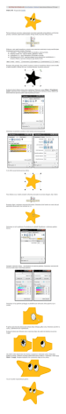 TECHNIKI MULTIMEDIALNE | Dr inż. Radosław J. Kozłowski | Instytut Inżynierii Rolniczej, UP Poznań INKSCAPE - Rozgwiazda [źródło] Pierwszy krok jest oczywisty: rozpoczynamy rysowanie rozgwiazdy od jej podstawy czyli prostej gwiazdy, wybieramy odpowiednie narzędzie, którego ikonka ma postać żółtej gwiazdy. Widoczny u góry pasek narzędziowy zmienia swoje ustawienia, pojawiają się opcję umożliwiające konfigurację rysowanego kształtu. Zmieniamy ● Narożniki: 5 - opcja określająca liczbę wierzchołków, ramion gwiazdy, ● Proporcje ramion: 0,5 - opcja ta określa „głębokość” ramion, ● Zaokrąglenie: 0,2 - opcja zaokrąglenia wierzchołków gwiazdy, ● Deformacja losowa: 0,02 - opcja powodująca losowo generowane niedokładności w kształcie obiektu co pozwala zmniejszyć jego idealny kształt. Rysujemy dużą gwiazdę. Aby ją obrócić wystarczy zaznaczyć narzędziem selekcji (czarna strzałka na pasku narzędzi) i kliknąć dwa razy. Gwiazdę obracamy za pomocą uchwytów. Kolejnym krokiem będzie zmiana stylu wypełnienia. Wybieramy opcję (Obiekt > Wypełnienie i kontur). Zmieniamy kolor wypełnienia (zakładka Wypełnienia) za pomocą wartości składowych koloru RGB oraz przeźroczystość A jak na poniższym zrzucie. Zmieniamy też parametry szerokość i kolor konturu utworzonej gwiazdy. A oto efekt naszej dotychczasowej zabawy. Teraz dodamy oczy. Z palety narzędzi wybieramy przyrząd do rysowania okręgów, elips i łuków. Rysujemy elipsę i zmieniamy ustawienia dla konturu. Zmieniamy kolor konturu na czarny (tak jak poprzednio dla gwiazdy) oraz szerokość na 1,6. Zmieniamy też styl wypełnienia. Przechodzimy do zakładki Wypełnienie i wybieramy gradient liniowy. Następnie wybieramy Edytuj... i przechodzimy do ustawień gradientu. Zmieniamy ustawienia dla koloru początkowego i końcowego gradientu. Zmieniamy też kąt gradientu posługując się dodatkowymi uchwytami, które pojawiły się na rysunku. W górnej części dna oka umieszczamy kolejną elipsę imitującą gałkę oczną. Zmieniamy jej kolor na czarny, z jednokolorowym wypełnieniem. Kolejnym krokiem jest obrócenie nowo wstawionej elipsy aby nadać oku bardziej rzeczywisty wygląd. Aby ułatwić sobie skopiowanie oka możemy je zgrupować. Zaznaczmy czarną i białą elipsę (klikamy na każdy z obiektów trzymając jednocześnie klawisz SHIFT). I wybieramy z menu opcję Obiekt > Grupuj. Następnie kopiujemy oko i przenosimy kopię na lewą stronę. I to już wszystko rozgwiazda jest gotowa.