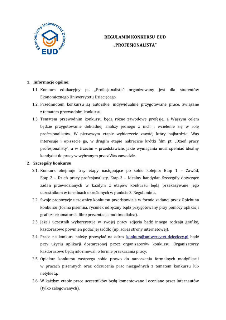 REGULAMIN KONKURSU EUD „PROFESJONALISTA”