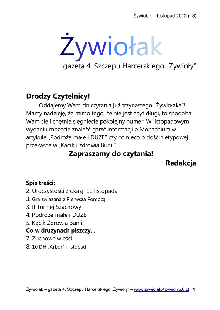 gazeta 4. Szczepu Harcerskiego „Żywioły”