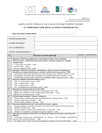 KARTA OCENY OPERACJI WG LOKALNYCH KRYTERIÓW