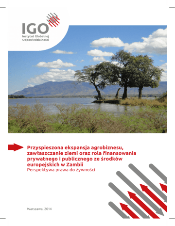 Przyspieszona ekspansja agrobiznesu, zawłaszczanie ziemi oraz rola finansowania prywatnego i publicznego ze środków europejskich w Zambii Perspektywa prawa do żywności Warszawa, 2014 Przyspieszona ekspansja agrobiznesu, zawłaszczanie ziemi oraz rola finansowania prywatnego i publicznego ze środków europejskich w Zambii Spis treści Perspektywa prawa do żywności Opublikowano przez Hands off the Land (HotL) Autor: Roman Herre, FIAN Germany Data: grudzień 2013 r. Redakcja: Richard van Ess Niniejsze opracowanie powstało przy wsparciu dwóch badań wykonanych przez Profundo i Philippa Salzmanna. Szczególne podziękowania dla Ute Hausmanna za recenzję i uwagi. Publikacja została wydana przez Instytut Globalnej Odpowiedzialności w ramach koalicji Hands off the Land Alliance i projektu „Liderzy i liderki społeczności studenckich aktywni w polskiej debacie publicznej”. Projekt Na swoim (ang. Hands off the Land) to trzyletnia kampania, której celem jest zwiększanie świadomości społecznej, wspieranie suwerenności żywnościowej i dostępu do ziemi w krajach Globalnego Południa. Liderzy i Liderki Społeczności Studenckich Aktywni w Polskiej Debacie Publicznej to projekt zachęcający studentów i studentki polskich uczelni do brania bardziej aktywnego udziału w debacie dotyczącej zagadnień kluczowych dla przyszłości świata oraz wzmacniający poczucie odpowiedzialności za globalne procesy i powiązane z nimi zjawiska. Projekt Liderzy i Liderki Społeczności Studenckich Aktywni w Polskiej Debacie Publicznej jest współfinansowany przez rząd Szwajcarii w ramach programu współpracy z nowymi krajami członkowskimi Unii Europejskiej. Jest on realizowany w partnerstwie ze Związkiem Stowarzyszeń Polska Zielona Sieć. Projekt Hands off the Land (HOtL) – Take Action Against Land Grabbing jest współfinansowany ze środków Unii Europejskiej. Publikacja współfinansowana ze środków Unii Europejskiej. Publikacja wyraża wyłącznie poglądy autora i nie może być utożsamiana z oficjalnym stanowiskiem Unii Europejskiej. Uwagi wstępne 1. Wprowadzenie: Zawłaszczanie ziemi i kapitał finansowy 2. Informacje ogólne 2.1 Prawo do żywności: ramy prawne dla Zambii i państw europejskich 2.2 Ubóstwo, rozwój i głód w Zambii 2.3 Ziemia w Zambii 2.4 Szerszy kontekst rozwoju agrobiznesu w Zambii 3. Prawo do właściwego wyżywienia i światowy system produkcji żywności 4. Inwestycje finansowe i ekspansja agrobiznesu na przykładzie europejskiego kapitału w Zambii 4.1 Prywatni inwestorzy finansowi 4.1.1 AmatheonAgri 4.1.2 DWSGALO 4.1.3 Ferrostaal 4.1.4 Inne prywatne podmioty finansowe 4.2 Udział finansowania rozwoju oraz finansowania instytucjonalnego 4.2.1 Chayton Africa 4.2.2 Zambeef 4.3 Dalszy udział finansowania rozwoju oraz finansowania instytucjonalnego 5. Wnioski 5.1 Czy kapitał finansowy uwzględnia rozwój rolnictwa wśród najuboższych? 5.1.1 Czy widać różnice w przypadku kapitału donorów? 5.2 Wnioski dotyczące perspektywy prawa do żywności 5.2.1 Dostęp do ziemi: Rosnąca presja na ziemię stanowi coraz większy problem strukturalny 5.2.2 Dostępność żywności określanej jako „efekt ewolucji rolni ctwa” dla ubogich mieszkańców terenów wiejskich 5.2.3 Ekonomiczna dostępność żywności z perspektywy pracy zarobkowej 6. Rekomendacje Przyspieszona ekspansja agrobiznesu, zawłaszczanie ziemi oraz rola finansowania prywatnego i publicznego ze środków europejskich w Zambii Perspektywa prawa do żywności Uwagi wstępne Celem niniejszego opracowania jest przedstawienie spostrzeżeń na temat wpływu niedawnych aktów zawłaszczania ziemi (ang. land grabbing) na światowy system produkcji żywnościowy1 oraz na prawo do żywności. Obserwacje w tym zakresie zostały przeprowadzone z uwzględnieniem światowego łańcucha wartości2. Wstępne wyniki badań wykazały, że w zasadzie niemożliwe jest pozyskanie wiarygodnych, szczegółowych informacji na temat produktów znajdujących się w tym łańcuchu. Nie wiadomo np. które przedsiębiorstwa przetwórcze skupują pszenicę z poszczególnych części plantacji znajdujących się w kraju X i należących do przedsiębiorstwa agrobiznesu Y. Wstępne wyniki badań wykazały również, że stale rośnie znaczenie inwestorów finansowych w rozwoju konglomeratów agrobiznesowych. Powyższa obserwacja wpłynęła na decyzję, aby zastąpić opracowanie międzynarodo- we jednym, pogłębionym opracowaniem skupiającym się na Zambii. Spostrzeżenie to wpłynęło także na fakt, że początkowy cel publikacji w postaci przedstawienia procesu integracji pionowej przedsiębiorstw wzdłuż łańcucha żywności został nie tylko zachowany, ale wręcz rozwinięty. Co więcej, nie wpłynęło ono negatywnie na przyjęcie w poniższym opracowaniu perspektywy prawa do żywności zgodnie z pierwotnymi założeniami. Jeśli chodzi o zakres zagadnień poruszanych w prezentowanej publikacji, to autorzy położyli nacisk na logikę działań oraz rolę i wpływ inwestorów finansowych na sektor spożywczy w Zambii. Należy zwrócić uwagę, że poniższe opracowanie ma charakter wstępny. Jego wyniki powinny być traktowane jako zachęta do przeprowadzenia pogłębionych badań terenowych. Prezentowane badanie dotyczy trzech k w e s t i i z aw a r t y c h w p o n i ż s z y c h pytaniach: • Jaką rolę odgrywa europejski kapitał finansowy w zawłaszczaniu ziemi 1 To jest: na funkcjonowanie tego systemu, zarządzanie nim, a także na kluczowe podmioty biorące w nim udział. 2 Łańcuch wartości (ang. value chain) – sekwencja działań przekształcania zasileń, technologii i pracy ludzi na produkty finalne. 4 Przyspieszona ekspansja agrobiznesu, zawłaszczanie ziemi oraz rola finansowania prywatnego i publicznego ze środków europejskich w Zambii Perspektywa prawa do żywności w Zambii i w związanej z nim ekspansji agrobiznesu? Czy można wyróżnić charakterystyczne cechy tego rodzaju zaang