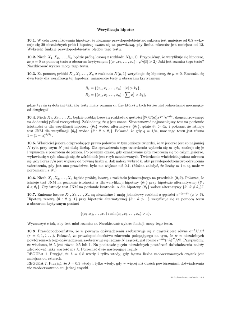 10.9. Zmienne losowe X1 , X2 , . . . , Xn są niezależne, przy czym Xi ma rozkład N (θi , 1). Weryfikuje się