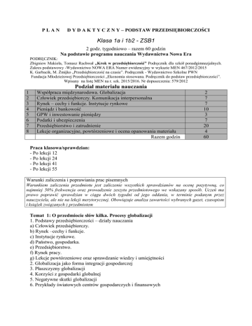 Plan Dydaktyczny 2016/2017 - Podstawy Przedsiębiorczości