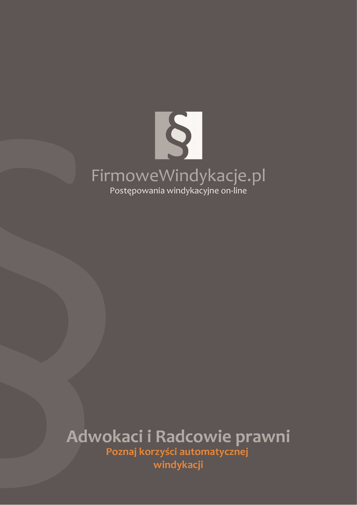 FirmoweWindykacje.pl > Wprowadzenie Strona 1 samodzielna, tania, skuteczna windykacja należności nowoczesny sposób zarządzania postępowaniami PROFESJONALNY PORTAL WINDYKACYJNY PRZYŚPIESZENIE WINDYKACJI Rozbudowane narzędzie do zarządzania postępowaniami windykacyjnymi. Proste i szybkie generowanie pism windykacyjnych potrzebnych na każdym etapie windykacji. Rozbudowane Ostateczne wezwanie do zapłaty, dostosowane do postępowania pozwy sądowe, szczegółowe wnioski o wszczęcie egzekucji, protokoły dokumentujące nieściągalność wierzytelności, dokumenty do przeprowadzenia korekty deklaracji VAT i wiele innych. Automatyczne wykonywanie przez portal wielu powtarzalnych czynności skraca czas potrzebny do przygotowania dokumentów windykacyjnych. Zwiększa się wydajność oraz skuteczność windykacji, która pozytywnie wpływa na sytuację finansową każdego przedsiębiorstwa. Portal wyposażony w Bazę wiedzy zawierającą praktyczne porady i informacje o windykacji i sposobach poszukiwania majątku dłużnika, mobilizacji komornika do działań i optymalizacji kosztów. Ponadto, do dyspozycji Użytkowników pozostają Giełda wierzytelności i Baza firm windykacyjnych. MOBILNOŚĆ I WYGODA Windykację należności może prowadzić każdy, bez względu na wykształcenie i posiadane doświadczenie. Windykacja nie jest skomplikowana. To proste! OSZCZĘDNOŚĆ PIENIĘDZY Wszystkie pisma udostępniane są w stałych cenach bez względu na wartość przedmiotu sporu. Portal nie pobiera prowizji ani dodatkowych opłat za skuteczne odzyskanie pieniędzy. Gwarantuje to przewidywalność kosztów oraz zapewnia tanią i skuteczną windykację należności. FirmoweWindykacje.pl > Korzyści Strona 2 poznaj korzyści i możliwości samodzielnej windykacji pozbądź się ograniczeń i zadbaj o swoją sytuację finansową SZYBKOŚĆ WINDYKACJI PEŁNA SAMODZIELNOŚĆ Wygenerowanie potrzebnego pisma odbywa się w sposób intuicyjny. Użytkownik posiada dostęp do Panelu użytkownika, w którym wpisuje odpowiednie dane do Bazy danych, a następnie przy wykorzystaniu wcześniej wprowadzonych danych uzupełnia prosty formularz zakupu pisma. Czas potrzebny do wygenerowania wezwania, pozwu sądowego lub wniosku egzekucyjnego to średnio 5 minut. Użytkownik może prowadzić działania windykacyjne w dowolnym momencie, nawet wieczorem w domu z dostępem do Internetu. Osoba prowadząca postępowanie ma dostęp do swoich postępowań windykacyjnych przez 24 godziny na dobę z każdego miejsca na Ziemi z dostępem do Internetu. Raz wpisane dane o dłużniku, jego zaległościach, adresy sądów i komorników są wykorzystywane przez portal bez konieczności ponownego ich uzupełniania i umieszczania w kolejnych pismach. Usprawnia to znacząco tworzenie pism potrzebnych na kolejnych etapach windykacji danego dłużnika. Zakup pism odbywa się przy wykorzystaniu płatności elektronicznych, dzięki czemu Użytkownik od razu otrzymuje gotowe pismo do wydrukowania, bez konieczności czekania. SKUTECZNOŚĆ PISM Według przeprowadzonych badań, skuteczność oferowanych przez portal pism wynosi blisko 80% skuteczności w odzyskiwaniu należności. Jest to jedna z najtańszych i najskuteczniejszych form windykacji w Polsce. BRAK OGRANICZEŃ Wszystkie wygenerowane pisma wystarczy podpisać i wysłać do dłużnika lub sądu wraz z ewentualnymi załącznikami. FirmoweWindykacje.pl > Zasady windykacji Strona 3 założenia skutecznej windykacji szybkość i konsekwencja nie pozwól innym decydować o Twoich finansach SZYBKOŚĆ DZIAŁAŃ KONSEKWENCJA Wraz z terminem opóźnienia w płatnościach spada skuteczność późniejszej windykacji. Tylko szybko rozpoczęte działania pozwalają zabezpieczyć interes Wierzyciela i szybko odzyskać pieniądze od dłużnika. W sytuacji, gdy jeden sposób prowadzenia windykacji okaże się nieskuteczny, należy przejść do następnego etapu odzyskiwania długów. Nie ma nic gorszego niż wysyłanie wielu ponagleń do dłużnika o identycznej treści. Windykację można rozpocząć od monitoringu płatności i przypominania klientom o zbliżającym się terminie płatności zanim staną się dłużnikami. Wystarczy jedno, skutecznie dostarczone wezwanie do zapłaty, by następnie skierować pozew do sądu i zabezpieczyć swoje należności nakazem zapłaty. UNIKANIE PRZEDAWNIENIA NAWYKI I PROCEDURY Wcześniej rozpoczęte działania windykacyjne chronią wierzyciela przed przedawnieniem roszczenia. By uniknąć przedawnienia warto skierować pozew do sądu lub podpisać z dłużnikiem ugodę pozasądową. INFORMACJE O DŁUŻNIKU Na każdym etapie windykacji należy zbierać informacje o majątku dłużnika. Numery rachunków bankowych, informacje o samochodach, maszynach i wyposażeniu biura są bardzo przydatne przy wszczynaniu egzekucji komorniczej po uzyskaniu nakazu zapłaty. Wierzyciel na każdym etapie współpracy z klientem musi mieć na uwadze ochronę swoich pieniędzy. Należy zbierać dokumenty rejestrowe klientów oraz dbać o pisemne uzgodnienia między stronami. Każdy, nawet pozornie nieważny element może okazać się kluczowy podczas prowadzonej windykacji. Oferta dla Adwokatów i Radców Obsługa kluczowych dla Kancelarii klientów wymaga dobrego przygotowania do sprawy i dużej wiedzy praktycznej, dlatego warto korzystać z narzędzi usprawniających pracę każdej Kancelarii. Dokumenty windykacyjne może przygotowywać każdy pracownik obsługi Kancelarii lub aplikant, gdyż wiele spraw ogranicza się do przygotowania nieskomplikowanych wezwań lub pozwów. Podział obowiązków pozwala zwiększyć wydajność Kancelarii. FirmoweWindykacje.pl > Oferta dla adwokatów i radców prawnych Strona 5 rozwój zawodowy aplikantów większa wydajność pracy więcej czasu na obsługę kluczowych klientów PODZIAŁ OBOWIĄZKÓW NISKIE KOSZTY Dokumenty windykacyjne i pozwy sądowe w celu uzyskania nakazu zapłaty mogą być przygotowywane przez aplikantów l