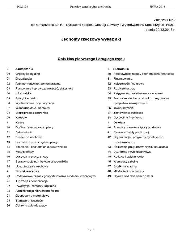 Załącznik Nr 2 - Jednolity Rzeczowy Wykaz Akt