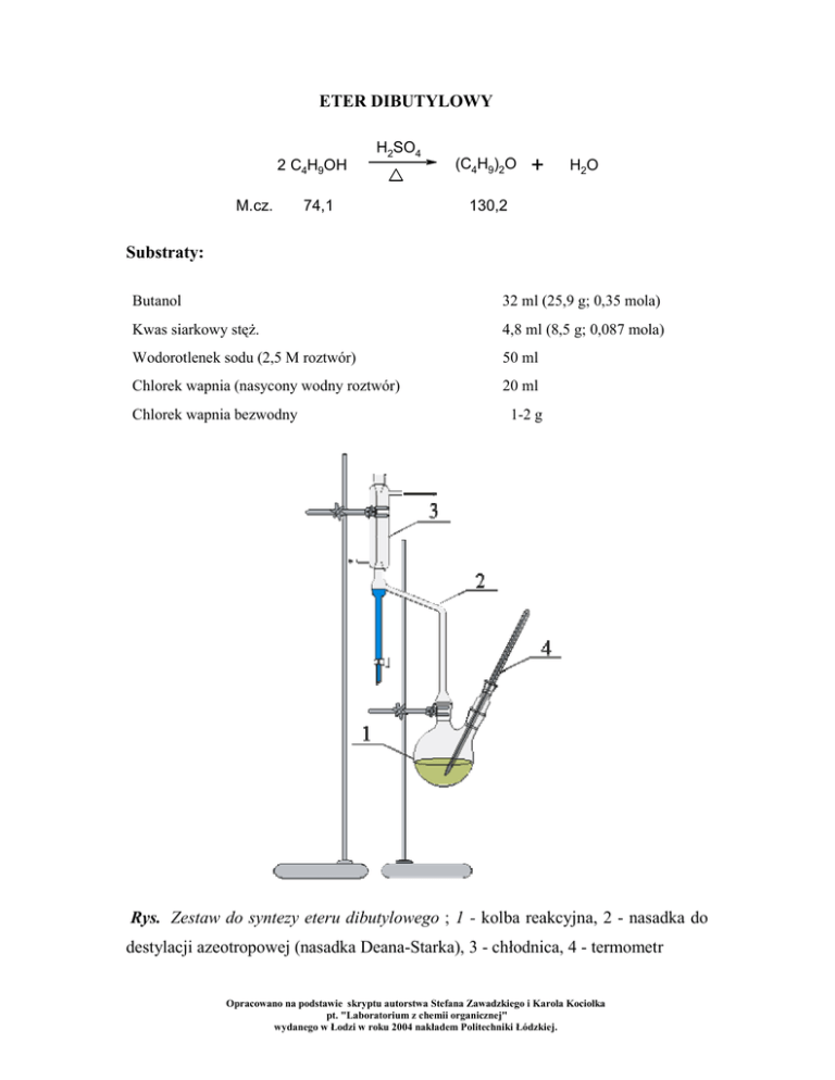 ETER DIBUTYLOWY Substraty: Rys. Zestaw do syntezy eteru