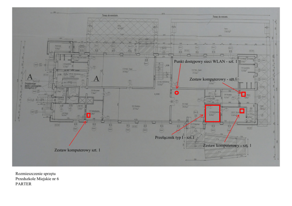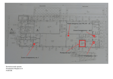 Punkt dostępowy sieci WLAN - szt. 1 Zestaw komputerowy - szt.1 Przełącznik typ I - szt.1 Zestaw komputerowy - szt. 1 Zestaw komputerowy szt. 1 Rozmieszczenie sprzętu Przedszkole Miejskie nr 6 PARTER