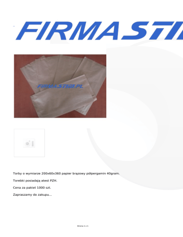 Torby o wymiarze 200x60x360 papier brązowy półpergamin 40gram. Torebki posiadają atest PZH. Cena za pakiet 1000 szt. Zapraszamy do zakupu... Strona 1 z 1