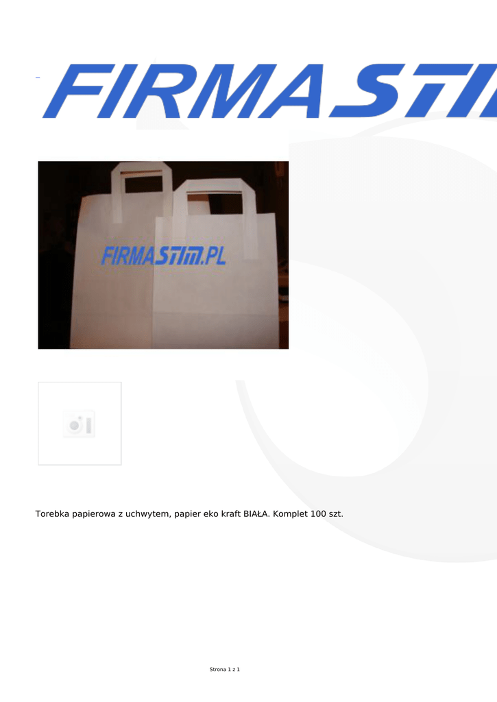 Torebka papierowa z uchwytem, papier eko kraft BIAŁA. Komplet 100 szt. Strona 1 z 1