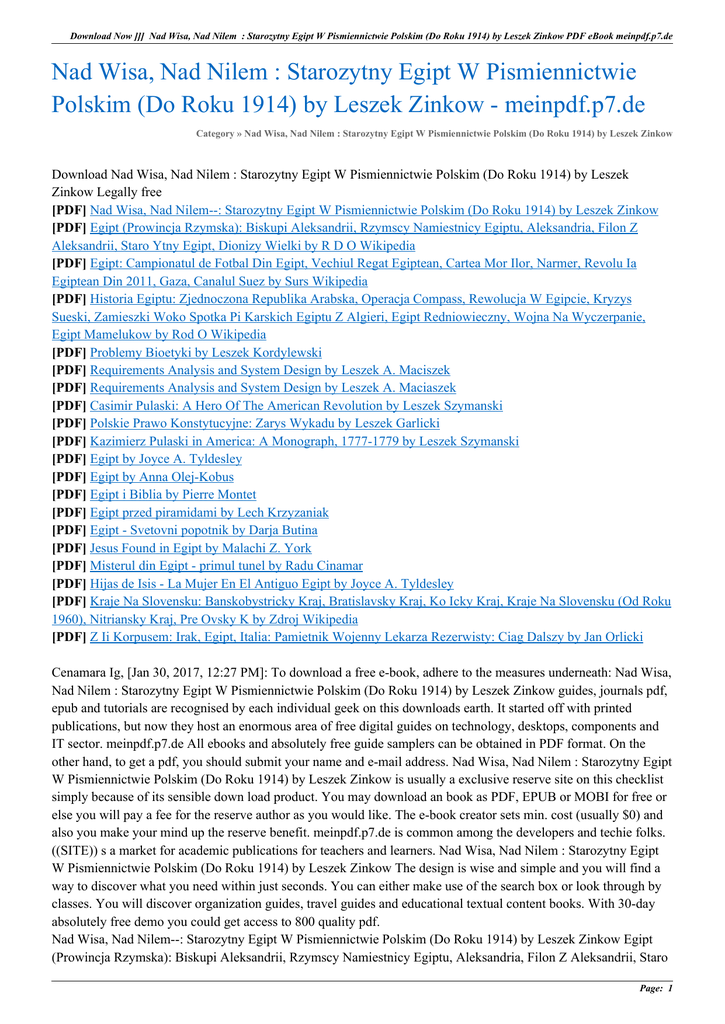 Download Now ]]] Nad Wisa, Nad Nilem : Starozytny Egipt W Pismiennictwie Polskim (Do Roku 1914) by Leszek Zinkow PDF eBook meinpdf.p7.de Nad Wisa, Nad Nilem : Starozytny Egipt W Pismiennictwie Polskim (Do Roku 1914) by Leszek Zinkow - meinpdf.p7.de Category » Nad Wisa, Nad Nilem : Starozytny Egipt W Pismiennictwie Polskim (Do Roku 1914) by Leszek Zinkow Download Nad Wisa, Nad Nilem : Starozytny Egipt W Pismiennictwie Polskim (Do Roku 1914) by Leszek Zinkow Legally free [PDF] Nad Wisa, Nad Nilem--: Starozytny Egipt W Pismiennictwie Polskim (Do Roku 1914) by Leszek Zinkow [PDF] Egipt (Prowincja Rzymska): Biskupi Aleksandrii, Rzymscy Namiestnicy Egiptu, Aleksandria, Filon Z Aleksandrii, Staro Ytny Egipt, Dionizy Wielki by R D O Wikipedia [PDF] Egipt: Campionatul de Fotbal Din Egipt, Vechiul Regat Egiptean, Cartea Mor Ilor, Narmer, Revolu Ia Egiptean Din 2011, Gaza, Canalul Suez by Surs Wikipedia [PDF] Historia Egiptu: Zjednoczona Republika Arabska, Operacja Compass, Rewolucja W Egipcie, Kryzys Sueski, Zamieszki Woko Spotka Pi Karskich Egiptu Z Algieri, Egipt Redniowieczny, Wojna Na Wyczerpanie, Egipt Mamelukow by Rod O Wikipedia [PDF] Problemy Bioetyki by Leszek Kordylewski [PDF] Requirements Analysis and System Design by Leszek A. Maciszek [PDF] Requirements Analysis and System Design by Leszek A. Maciaszek [PDF] Casimir Pulaski: A Hero Of The American Revolution by Leszek Szymanski [PDF] Polskie Prawo Konstytucyjne: Zarys Wykadu by Leszek Garlicki [PDF] Kazimierz Pulaski in America: A Monograph, 1777-1779 by Leszek Szymanski [PDF] Egipt by Joyce A. Tyldesley [PDF] Egipt by Anna Olej-Kobus [PDF] Egipt i Biblia by Pierre Montet [PDF] Egipt przed piramidami by Lech Krzyzaniak [PDF] Egipt - Svetovni popotnik by Darja Butina [PDF] Jesus Found in Egipt by Malachi Z. York [PDF] Misterul din Egipt - primul tunel by Radu Cinamar [PDF] Hijas de Isis - La Mujer En El Antiguo Egipt by Joyce A. Tyldesley [PDF] Kraje Na Slovensku: Banskobystricky Kraj, Bratislavsky Kraj, Ko Icky Kraj, Kraje Na Slovensku (Od Roku 1960), Nitriansky Kraj, Pre Ovsky K by Zdroj Wikipedia [PDF] Z Ii Korpusem: Irak, Egipt, Italia: Pamietnik Wojenny Lekarza Rezerwisty: Ciag Dalszy by Jan Orlicki Cenamara Ig, [Jan 30, 2017, 12:27 PM]: To download a free e-book, adhere to the measures underneath: Nad Wisa, Nad Nilem : Starozytny Egipt W Pismiennictwie Polskim (Do Roku 1914) by Leszek Zinkow guides, journals pdf, epub and tutorials are recognised by each individual geek on this downloads earth. It started off with printed publications, but now they host an enormous area of free digital guides on technology, desktops, components and IT sector. meinpdf.p7.de All ebooks and absolutely free guide samplers can be obtained in PDF format. On the other hand, to get a pdf, you should submit your name and e-mail address. Nad Wisa, Nad Nilem : Starozytny Egipt W Pismiennictwie Polskim (Do Roku 1914) by Leszek Zinkow is usually a exclusive reserve site on this checklist simply because of its sensible down load product. You may download an book as PDF, EPUB or MOBI for free or else you will pay a fee for the reserve author as you would like. The e-book creator sets min. cost (usually $0) and also you make your mind up the reserve benefit. meinpdf.p7.de is common among the developers and techie folks. ((SITE)) s a market for academic publications for teachers and learners. Nad Wisa, Nad Nilem : Starozytny Egipt W Pismiennictwie Polskim (Do Roku 1914) by Leszek Zinkow The design is wise and simple and you will find a way to discover what you need within just seconds. You can either make use of the search box or look through by classes. You will discover organization guides, travel guides and educational textual content books. With 30-day absolutely free demo you could get access to 800 quality pdf. Nad Wisa, Nad Nilem--: Starozytny Egipt W Pismiennictwie Polskim (Do Roku 1914) by Leszek Zinkow Egipt (Prowincja Rzymska): Biskupi Aleksandrii, Rzymscy Namiestnicy Egiptu, Aleksandria, Filon Z Aleksandrii, Staro Page: 1 Download Now ]]] Nad Wisa, Nad Nilem : Starozytny Egipt W Pismiennictwie Polskim (Do Roku 1914) by Leszek Zinkow PDF eBook meinpdf.p7.de Ytny Egipt, Dionizy Wielki by R D O Wikipedia Egipt: Campionatul de Fotbal Din Egipt, Vechiul Regat Egiptean, Cartea Mor Ilor, Narmer, Revolu Ia Egiptean Din 2011, Gaza, Canalul Suez by Surs Wikipedia Historia Egiptu: Zjednoczona Republika Arabska, Operacja Compass, Rewolucja W Egipcie, Kryzys Sueski, Zamieszki Woko Spotka Pi Karskich Egiptu Z Algieri, Egipt Redniowieczny, Wojna Na Wyczerpanie, Egipt Mamelukow by Rod O Wikipedia Problemy Bioetyki by Leszek Kordylewski Requirements Analysis and System Design by Leszek A. Maciszek Requirements Analysis and System Design by Leszek A. Maciaszek Casimir Pulaski: A Hero Of The American Revolution by Leszek Szymanski Polskie Prawo Konstytucyjne: Zarys Wykadu by Leszek Garlicki Kazimierz Pulaski in America: A Monograph, 1777-1779 by Leszek Szymanski Egipt by Joyce A. Tyldesley Egipt by Anna Olej-Kobus Egipt i Biblia by Pierre Montet Egipt przed piramidami by Lech Krzyzaniak Egipt - Svetovni popotnik by Darja Butina Jesus Found in Egipt by Malachi Z. York Misterul din Egipt - primul tunel by Radu Cinamar Hijas de Isis - La Mujer En El Antiguo Egipt by Joyce A. Tyldesley Kraje Na Slovensku: Banskobystricky Kraj, Bratislavsky Kraj, Ko Icky Kraj, Kraje Na Slovensku (Od Roku 1960), Nitriansky Kraj, Pre Ovsky K by Zdroj Wikipedia Z Ii Korpusem: Irak, Egipt, Italia: Pamietnik Wojenny Lekarza Rezerwisty: Ciag Dalszy by Jan Orlicki Page: 2