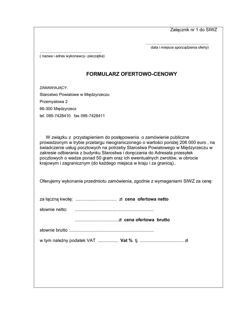 formularz ofertowo-cenowy - Starostwo Powiatowe w Międzyrzeczu