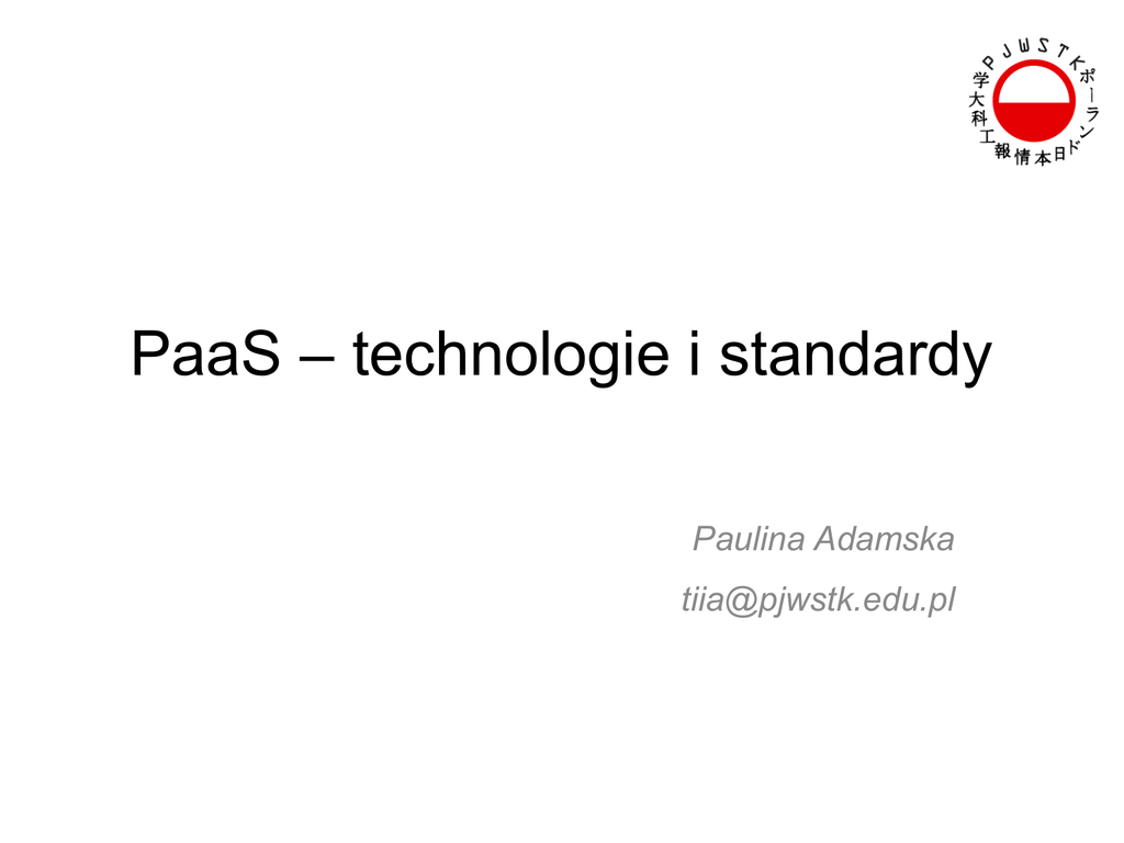 PaaS – technologie i standardy Paulina Adamska [email protected] Plan przedmiotu ● ● ● Technologie webowe Standardy i protokoły wykorzystywane w aplikacjach webowych Wprowadzenie do tematyki chmur ● Przegląd platform cloudowych (PaaS) ● Google App Engine ● Symulacje chmur ● Środowiska do symulacji ogólnie Co się przyda? ● Programowanie ● Java i środowisko Eclipse… ● Podstawowa wiedza na temat technologii webowych Przydatna w projektach ale nie niezbędna Literatura ● ● ● "Cloud Computing Bible", Barrie Sosinsky, Wiley 2010 „Beginning Java Google App Engine”, Kyle Roche, Jeffrey J. Douglas, Springer 2010 „Google App Engine Java and GWT Application Development”, Daniel Guermeur, Amy Unruh, Packt Publishing 2009 ● Prezentacje z Google I/O ● https://developers.google.com/appengine/ Zasady zaliczenia ćwiczeń ● ● ● ● Projekt Prezentacja dotycząca wybranego zagadnienia związanego z chmurami lub zadanie programistyczne Wszystkie projekty są jednoosobowe Ocena z ćwiczeń przeliczana jest na punkty, które doliczają się do oceny z wykładu Punkty za ćwiczenia Projekty: Prezentacje ● Prezentacje na tematy związane z chmurami: ● ● Technologie/frameworki webowe Platformy cloudowe PaaS (różne prezentacje mogą dotyczyć tej samej platformy, ale różnych jej aspektów) ● Prywatność w chmurze ● Cloud testing ● Cloud application benchmarking ● … Prezentacje: Zasady ● ● ● Prezentacje należy przesłać na adres [email protected] najpóźniej na tydzień przed terminem prezentacji Prezentacja powinna zawierać kompletną bibliografię z listą źródeł do wglądu Wyniki pracy należy zaprezentować na ostatnich zajęciach (bez tego brak możliwości uzyskania oceny bdb) Prezentacje: Zasady ● ● Prezentacje dotyczące platform PaaS mogą mieć formę tutoriali Prezentacje powinny być ● Solidne (~30 minutowe) ● Ciekawe nie powinny być zwykłym tłumaczeniem jednej publikacji lub tekstu z wikipedii Prezentacje: Zasady ● ● ● Szczegółowy temat prezentacji należy wcześniej zgłosić (bezpośrednio lub drogą mailową) W przypadku zainteresowania tematem większej grupy osób decyduje kolejność zgłoszeń Istnieje możliwość wyboru jednego tematu z listy przez większą liczbę osób pod warunkiem, że każda z nich będzie zajmowała się innym jego aspektem Projekty: Programistyczne ● ● Symulacje wykorzystujące CloudSim lub środowisko Repast Aplikacje ● ● Zastrzegam sobie tydzień na podjęcie decyzji o akceptacji pomysłu na aplikację jako projektu Kompletny kod źródłowy programu wraz z dokumentacją należy udostępnić najpóźniej na tydzień przed terminem prezentacji Zasady zaliczenia wykładu ● Punkty z ćwiczeń (max 30 punktów) ● Egzamin z wykładów (max 20 punktów) Ważne daty ● Zajęcia w całości przeznaczone na konsultacje projektowe ● 29.10 ● 10.12 ● Prośba o uprzedzanie o temacie projektu, którego dotyczą konsultacje Wcześniejszy termin szczególnie dla osób, które planują projekt dotyczący symulacji, ponieważ ten temat poruszany będzie na zajęciach dopiero pod koniec semestru Ważne daty ● ● ● Zajęcia w całości przeznaczone na prezentacje projektów ● 17.12 ● 21.01 W każdym terminie może prezentować maksymalnie 5 osób Rezerwacje konkretnych terminów drogą mailową (lista będzie dostępna na ftp) Plan wykładu ● Aplikacje webowe ● Rodzaje ● Komponenty ● Technologie ● ● – Java Servlet – Java Server Faces – Facelets Cykl życia aplikacji Serwery aplikacji Technologie webowe WPROWADZENIE Aplikacje webowe ● ● Dynamiczne rozszerzenie funkcjonalności sieci lub serwera aplikacji Dwa rodzaje: ● Presentation-oriented ● Service-oriented Presentation-oriented ● ● ● Generowanie interaktywnych stron bazujących na HTML, XHTML, XML, itp. Dynamiczne generowanie treści w odpowiedzi na żądania HTTP Technologie/frameworki ● Java Server Faces ● GWT ● Seam ● … Service-oriented ● Implementują endpoint usługi ● Poprzednia grupa to często ich frontendy ● Technologie i standardy ● JAX ● REST Elementy aplikacji ● Komponenty aplikacji (web components) O nich bardziej szczegółowo za chwilę… ● Statyczne pliki z zasobami (np. obrazki) ● Klasy pomocnicze, zewnętrzne biblioteki Komponenty aplikacji ● Rodzaje ● ● Strony implementowane za pomocą Java Server Faces (Facelets) Endpointy usług webowych np. serwlety ● ● Strony Java Server Pages (obecnie oznaczone jako przestarzałe) Działają w środowisku zapewnianym przez web container Web Container ● Zapewnia ● Przekazywanie żądań ● Bezpieczeństwo ● Współbieżność ● Zarządzanie cyklem życia aplikacji ● Dostęp do dodatkowych API (np. transakcje) Komponenty aplikacji Komponenty aplikacji ● ● Obszary zastosowań poszczególnych rodzajów komponentów są podobne Każdy charakteryzuje się pewnymi właściwościami ● ● Serwlety – Dedykowane klasy przystosowane do przetwarzania żądań i generowania odpowiedzi na nie – Implementacja endpointów usług Java Server Faces – Wykorzystywane raczej do prezentacji danych Konfiguracja aplikacji ● ● Niektóre mechanizmy związane z działaniem aplikacji mogą zostać skonfigurowane dopiero po instalacji Metody konfiguracji ● Anotacje (np. Java EE) ● Deployment descriptor – Plik tekstowy z konfiguracją w formacie XML Cykl życia aplikacji ● ● ● Tworzenie ● Implementacja komponentów aplikacji ● Stworzenie deskryptora (deployment descriptor) ● Kompilacja Wdrożenie ● Pakowanie (opcjonalnie) ● Załadowanie na serwer aplikacji (web container) Uruchomienie ● Wysłanie żądania HTTP na odpowiedni adres URL Aplikacje webowe ETAPY CYKLU ŻYCIA Aplikacje webowe TWORZENIE APLIKACJI Komponenty aplikacji ● Java Servlet ● Java Server Faces ● Facelets Tworzenie aplikacji SERWLETY Java Servlet ● Klasa rozszerzająca funkcjonaln