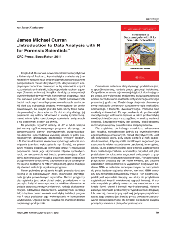 RECENZJE rec. Jerzy Konieczny James Michael Curran „Introduction to Data Analysis with R for Forensic Scientists” CRC Press, Boca Raton 2011 Dzięki J.M. Curranowi, nowozelandzkiemu statystykowi z University of Auckland, kryminalistyka znalazła się (nareszcie!) w rzędzie nauk dysponujących zaawansowanym podręcznikiem metod statystycznych, dedykowanym empirycznym badaniom naukowym w tej mianowicie części rozumienia kryminalistyki, która odpowiada naukom sądowym (forensic sciences). Książka nie dotyczy interpretacji wyników badań dowodowych, konkretnych ekspertyz, lecz ma stanowić pomoc dla badaczy. „Wiele podstawowych badań naukowych musi być przeprowadzonych zanim jakiś ślad czy substancja zostaną wykorzystane do celów dowodowych. Ta książka jest dla tych, którzy takie badania prowadzą” – pisze autor (s. 2). Już choćby dlatego jej pojawienie się należy odnotować z wielką życzliwością, nawet mimo tylko częściowego spełnienia związanych z nią oczekiwań, o czym za chwilę. Na początku wyjaśnić należy, iż „R” w tytule książki jest nazwą ogólnodostępnego programu służącego do opracowywania danych statystycznych, przeprowadzania obliczeń i sporządzania wysokiej jakości, w pełni profesjonalnych graficznych prezentacji wyników badań*. J.M. Curran dokładnie uzasadnia wybór tego właśnie rozwiązania (zamiast wykorzystania np. Excela), na pierwszym miejscu eksponując eliminację przez R możliwości popełniania przez jego użytkownika błędów syntaktycznych, co rzeczywiście jest bardzo przekonywające. Czytelnik zainteresowany książką powinien zatem rozpocząć przygotowanie do lektury od zapoznania się ze szczegółami; są one dostępne na http://r-project.org, gdzie znajduje się również instrukcja uzyskania programu. Nawet pobieżne przejrzenie książki pozwala dostrzec kolejną z jej podstawowych zalet, mianowicie przystępność języka prowadzonych wywodów. Bardzo przyjazny dla czytelnika jest także układ treści, przykładowo – na początku książki autor wprowadza niektóre elementarne pojęcia statystyczne (typy zmiennych, rodzaje skal pomiarowych, odchylenie standardowe, współczynnik korelacji itd.) i dopiero potem omawia metodykę instalacji programu R oraz podstawy jego wykorzystania w komputerze użytkownika. Ogólnie biorąc, książka ma charakter dobrze napisanego podręcznika. PROBLEMY KRYMINALISTYKI 275(1) 2012 Omawianie materiału statystycznego podzielone jest, w sposób naturalny, na dwie grupy: opisową i indukcyjną. Oczywiście, w sensie zajmowanej objętości, dominuje grupa druga, ale w pierwszej znajdujemy zwięzłą prezentację opisu i porządkowania materiału statystycznego oraz jego prezentacji graficznej. Część druga obejmuje charakterystykę rozkładów zmiennych (znajdujemy opis rozkładów: normalnego, t-Studenta, dwumianowego, Poissona oraz rozkłady chi-kwadrat i F), wprowadzenie do problematyki statystycznego testowania hipotez, a także problematykę niektórych testów oraz – szczegółowo – analizy wariancji i regresji. Szczególnie ważny jest odrębny i dość obszerny rozdział poświęcony projektowaniu eksperymentów. Dla czytelnika, do którego zasadniczo adresowana jest książka, najważniejsze jednak są kryminalistyczne egzemplifikacje omawianych metod statystycznych. Jest ich oczywiście sporo, przy czym niektóre z nich są bardzo konkretne, dotyczą ściśle określonych zagadnień (jak szacowanie wieku na podstawie uzębienia), inne ogólne, jak np. ta, na podstawie której autor omawia zastosowanie testu dokładnego Fishera, a konkretny przykład jest tylko pretekstem do pokazania zagadnień związanych z ryzykiem względnym i ilorazem wiarogodności. Ponadto wśród przykładów znajdują się tak różne kwestie, jak badanie uszkodzeń klatki piersiowej w wypadkach drogowych, badanie DNA w materiale zabezpieczonym na naczyniach do picia, badanie stężenia alkoholu we krwi, GBH w moczu czy zawartości pierwiastków w piwie – ten ostatni przypadek jest wprawdzie fikcyjny, ale służy do przybliżenia czytelnikowi kwestii wielokrotnej regresji liniowej. W sumie wszystkie przykłady mieszczą się zasadniczo w zakresie fizyki, chemii i biologii kryminalistycznej, niektóre zaliczyć można do problematyki wypadkowości drogowej lub, szerzej, do medycyny sądowej; jedynym przykładem spoza tego zestawu jest bardzo prosto pokazane zastosowanie testu niezalezności chi-kwadrat do badania związku pomiędzy wiekiem a płcią ofiar przestępstw. 79 RECENZJE Tak ograniczony dobór przykładów może budzić zastrzeżenia, bo autor nie pokazał żadnych przykładów z jądra laboratoryjnej kryminalistyki – nie ma wzmianek o daktyloskopii, biometrycznych metodach identyfikacji, badaniach pisma ręcznego, nie mówiąc np. o fonoskopii, mechanoskopii itd. Bazą źródłową autora jest bowiem literatura, przede wszystkim najpoważniejsze czasopisma z zakresu forensic sciences, a w opisywanych w nich badaniach znajdowana jest, widoczna potem w książce, inspiracja do stosowania metod statystycznych. Nie ma w tym niczego złego, taka jest typowa sytuacja dla autorów piszących o statystycznych metodach w wybranych dziedzinach nauki (szczególnie psychologii, socjologii, pedagogice czy medycynie). W przypadku kryminalistyki o takie inspiracje zaś znacznie łatwiej w tych jej częściach, które korzystają z dorobku zaawansowanych metodologicznie nauk przyrodniczych. Pewien niedosyt jednak pozostaje. 80 Poprzestanie na pozycji malkontenta byłoby jednak dużą nieuczciwością wobec omawianej pracy. J.M. Curran pokazał przede wszystkim, że zrobienie takiego przewodnika jest możliwe, celowe i pożyteczne. Osobiście nie wątpię, że „Introduction to Data Analysis …” otworzy serię tego rodzaju opracowań w naszej dziedzinie, bo zapotrzebowanie na literaturę dla badaczy pomocniczą, metodologiczną, a szczególnie właśnie statystyczną 