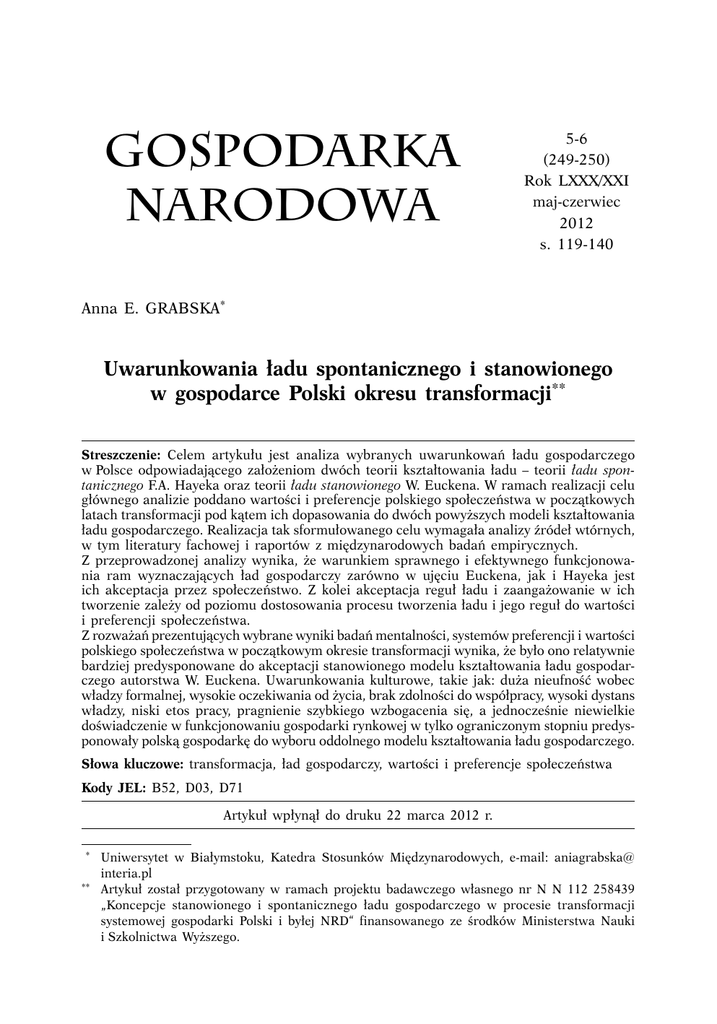 Artykuł - Gospodarka Narodowa