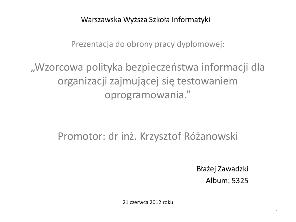 Prezentacja z obrony pracy - Warszawska Wyższa Szkoła Informatyki
