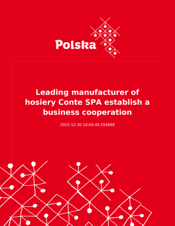 Leading manufacturer of hosiery Conte SPA establish a business cooperation 2015-12-30 10:04:45.554699 2 Esta oferta não constitui informação comercial Adres instytucji/firmy ogłaszającej ofertę Conte Polska sp z o.o. 93-564 Lodz . Wieniawskiego 42 44 . Poland Pessoa de contato Alena Krynicka [email protected] Tel: +48 519 559 904 http://conte.by/ru/about Descrição Dear Sir/Madame, My name is Lena Krynicka. I represent Conte Poland LTD, it's subsidiary of Belarussian manufacturer of hosiery products and knitwear for women, men and children Conte SPA. Conte SPA is a leading manufacturer of hosiery in Eastern Europe. The most famous brand of Conte SPA is Conte Elegant and we are actively developing men's brand DiWaRi, children’s brand Conte-Kids, known for its remarkable cotton collection and creative designs, and ESLI, a brand of knitwear for the whole family. In connection with our development, we are looking for a bussines partners/ distributors for different markets. We are interesting in private label projects, too. We can adapt our product according to your consumers and distribution channels requirements. Our presentation is attached. Yours faithfully, Alena Krynicka Tel. +48 519 559 904 [email protected] Nabywcy z zagranicy ● Armenia 3 ● ● ● ● ● ● ● ● ● ● Azerbejdżan Belgia Białoruś Dania Estonia Gruzja Kazachstan Litwa Łotwa Polska CPV ● Vestuário, calçado, malas e artigos de viagem, acessórios Tipo de oferta venda Prazo para apresentação das propostas 27.06.2016 Válido de 30.12.2015 Sector Tekstylia Odzież i obuwie Pozostałe tekstylia Odzież, tekstylia, wyroby skórzane 4 Empresa estrangeira SIM 5