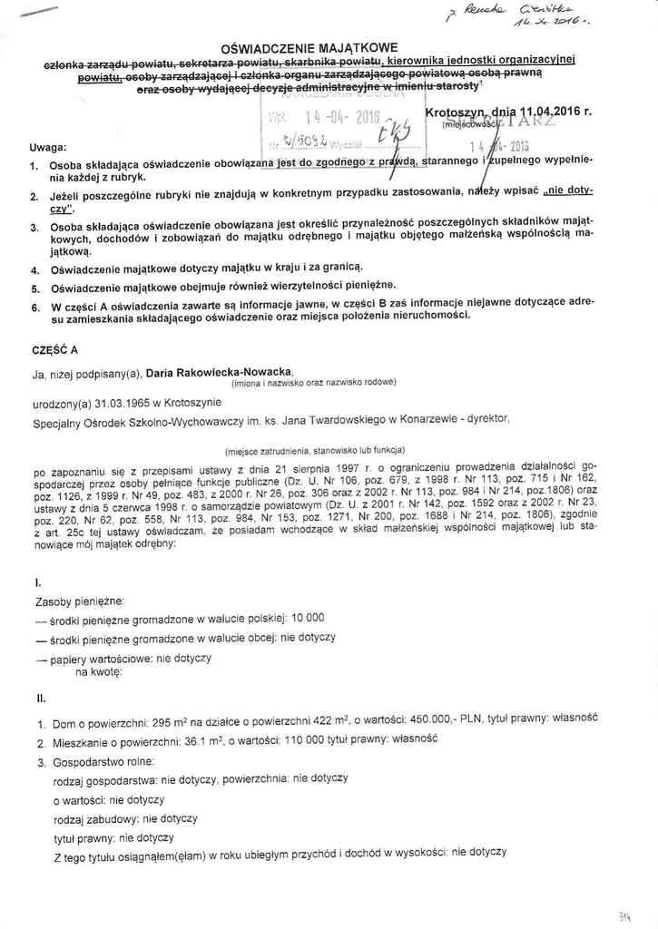w cżeściA oświadczenia zawańe są infolmacje jawne, w części B zaśinformacje niejawne dotyczące ad,e_