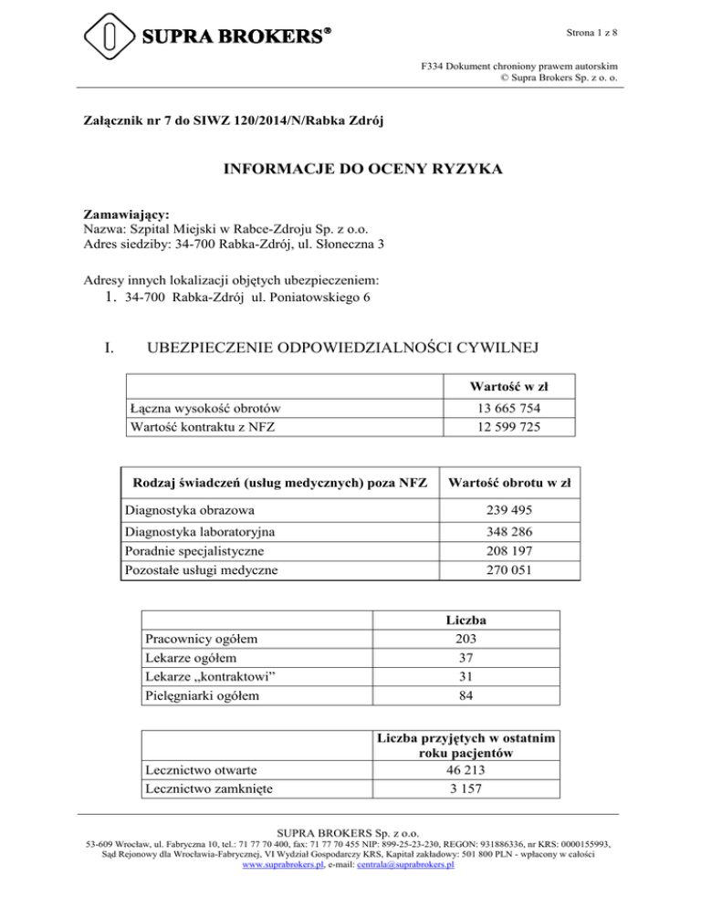 Informacje do oceny ryzyka - Szpital Miejski w Rabce