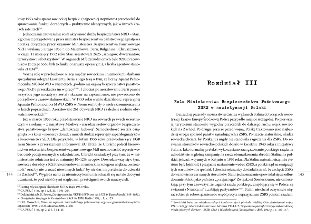 144 łowy 1953 roku aparat sowieckiej bezpieki (najpewniej stopniowo) przechodził do sprawowania funkcji doradczych – praktycznie identycznych, jak w innych krajach satelitach549. Jednocześnie zauważalnie rosła aktywność służby bezpieczeństwa NRD – Stasi. Zgodnie z przygotowaną przez ministra bezpieczeństwa państwowego Ignatjewa notatką dotyczącą pracy organów Ministerstwa Bezpieczeństwa Państwowego NRD, wysłaną 3 lutego 1953 r. do Malenkowa, Berii, Bułganina i Chruszczowa, w ciągu 11 miesięcy 1952 roku Stasi aresztowała 2625 „szpiegów, dywersantów, terrorystów i sabotażystów”. W organach MfS zatrudnionych było 9200 pracowników (z czego 5560 byli to funkcjonariusze operacyjni), a liczba agentów stanowiła 21 034550. Ważną rolę w przebudowie relacji między sowieckimi i niemieckimi służbami specjalnymi odegrał Ławrientij Beria z jego tezą o tym, że liczny Aparat Pełnomocnika MGB-MWD w Niemczech „podmienia organy bezpieczeństwa państwowego NRD i przeszkadza im w pracy”551. I chociaż po aresztowaniu Berii prawie wszystkie jego inicjatywy zostały skazane na zapomnienie, nie powrócono do porządków z czasów stalinowskich. W 1953 roku wyniki działalności represyjnej Aparatu Pełnomocnika MWD ZSRS w Niemczech były o wiele skromniejsze niż w latach poprzednich. Aresztowano 261 obywateli NRD i zaledwie siedmiu obywateli sowieckich552. Już w marcu 1955 roku przedstawiciele NRD na równych prawach uczestniczyli w zwołanej – z inicjatywy Moskwy – naradzie szefów organów bezpieczeństwa państwowego krajów „demokracji ludowej”. Samodzielność została osiągnięta i – z kolei – sowieccy doradcy musieli studzić represyjny zapał dogmatyków z kierownictwa SED. Dla przykładu, w lutym 1955 roku przewodniczący KGB Iwan Sierow z przerażeniem informował KC KPZS, że Ulbricht polecił kierownictwu sekretariatu bezpieczeństwa państwowego MdI mocno nasilić represje wobec osób podejrzewanych o szkodnictwo. Ulbricht oświadczył przy tym, że w ministerstwie rolnictwa jest co najmniej 10–12% wrogów. Dowiedziawszy się o tym, sowieccy doradcy z KGB rekomendowali niemieckim kolegom większą „ostrożność” oraz by nie „ruszać niewinnych ludzi”, by nie dać im pretekstu do ucieczki na Zachód553. Wygląda na to, że niemieccy komuniści okazali się na tyle dobrymi uczniami, że pod niektórymi względami prześcignęli swoich nauczycieli. Istotną rolę odegrała likwidacja SKK w maju 1953 roku. CA FSB, f. 4-os, op. 11, d. 23, l. 191–204. 551 Dokładniej zob. N. Petrov, Die Apparate des NKVD/MVD und des MGB in Deutschland (1945–1953), w: Sowjetische Straflager in Deutschland 1945 bis 1950, Berlin 1998, t. 1, s. 155. 552 O.B. Mozochin, Prawo na repressii: Wniesudiebnyje połnomoczija organow gosudarstwiennoj biezsopasnosti (1918–1953), Moskwa 2006, s. 458. 553 CA FSB, f. 5-os, op. 2, d. 5, l. 14–15. 549 550 Rozdział III Rola Ministerstwa Bezpieczeństwa Państwowego ZSRS w sowietyzacji Polski Bez żadnej przesady można stwierdzić, że w planach Stalina dotyczących sowietyzacji krajów Europy Środkowej Polsce przypadło miejsce szczególne. Po pierwsze, jej terytorium stanowiło wygodny przyczółek do dalszego ruchu wojsk sowieckich na Zachód. Po drugie, jeszcze przed wojną, Polskę traktowano jako najbardziej wrogie spośród państw sąsiadujących z ZSRS. Po trzecie, naturalnie, władza sowiecka chciała, by Polska już nigdy nie stanowiła zagrożenia dla ZSRS. Do zerwania stosunków sowiecko-polskich doszło w kwietniu 1943 roku z inicjatywy Stalina. Jako formalny pretekst wykorzystano zaangażowanie polskiego rządu na uchodźstwie w głośną kampanię na rzecz zdemaskowania zbrodni Stalina na polskich jeńcach wojennych w Katyniu w 1940 roku. Dla Stalina najważniejszym kryterium były lojalność i przyjazne nastawienie wobec ZSRS, a polski rząd na emigracji tych warunków nie spełniał. I chociaż sojusznicy dokładali starań, by zachęcić ZSRS do wznowienia zerwanych stosunków, Stalin jednoznacznie opowiadał się za odbudowanie Polski jako państwa „przyjaznego” Związkowi Sowieckiemu, nie omieszkając przy tym zauważyć, że „agenci rządu polskiego, znajdujący się w Polsce, są związani z Niemcami” i „zabijają partyzantów”554. Stalin, nie chciał oczywiście wiązać sobie rąk zobowiązaniem do współpracy z nieprzyjaznym ZSRS polskim rządem. Sowietskij Sojuz na mieżdunarodnych konfierencyjach pierioda Wielikoj Otiecziestwiennoj wojny, 1941–1945 gg.: Sbornik dokumientow, Moskwa 1984, t. 2, Tiegieranskaja konfieriencyja rukowoditielej trioch sojuznych dierżaw – SSSR, SSzA i Wielikobritanii (28 nojabria–1 diek. 1943 g.), s. 146–147. 554 145 146 Wraz z przemieszczaniem się Armii Czerwonej na Zachód otwierały się możliwości nie tylko doprowadzenia do władzy w tym kraju rządu lojalnego wobec ZSRS, ale także postawienia na czele nowych polskich władz komunistów. Właśnie tak Stalin wyobrażał sobie ostateczne rozstrzygnięcie kwestii polskiej. Po wkroczeniu na terytorium Polski Armii Czerwonej, kręgi narodowo-wyz woleńcze zorientowane na rząd polski w Londynie, zmuszone były zejść do podziemia. Były one brutalnie prześladowane przez oddziały NKWD. Na terenach zajmowanych przez atakujące wojska sowieckie, władzę przekazywano Krajowej Radzie Narodowej (KRN) kontrolowanej przez Moskwę555. Na jej czele stał Bolesław Bierut – jeden z przywódców Polskiej Partii Robotniczej (PPR). 21 lipca 1944 r. powstał Polski Komitet Wyzwolenia Narodowego, który 31 grudnia 1944 r. został przekształcony w Rząd Tymczasowy RP. Premierem tego rządu został Edward Osóbka-Morawski – przywódca Polskiej Partii Socjalistycznej (PPS). Rząd na uchodźstwie odnosił się do protegowanych Moskwy z wrogością. W październiku 1944 roku na negocjacje do Moskwy przybyli Churchill i Eden, a wraz z nimi przedstawiciele polskiego rządu w Londynie 