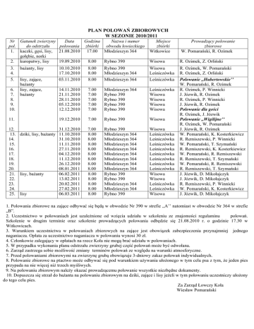 PLAN POLOWAŃ ZBIOROWYCH W SEZONIE 2010/2011